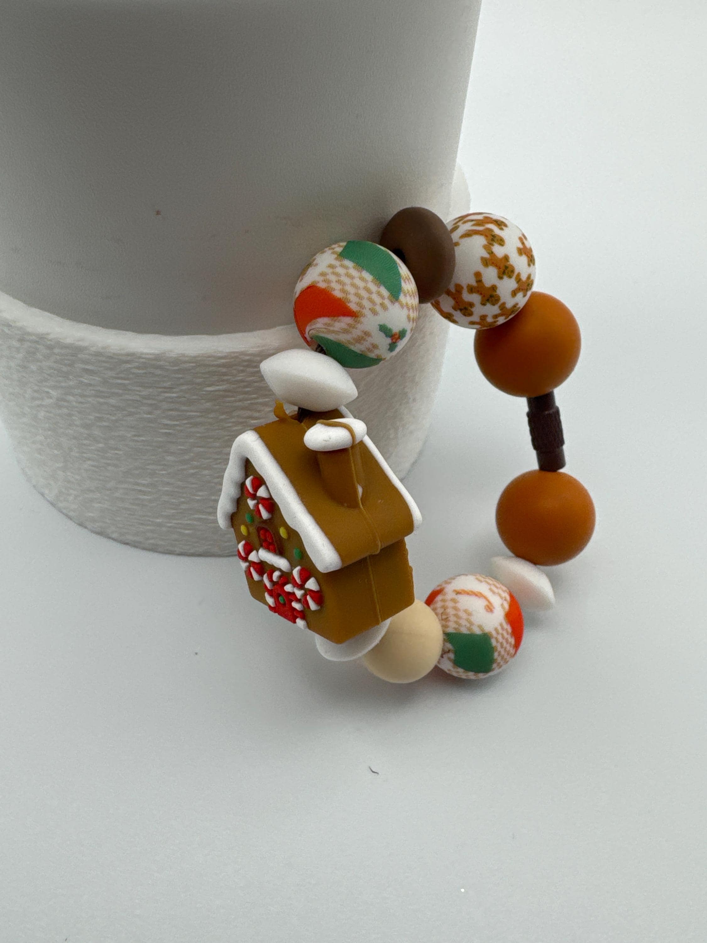 Gingerbread House Tumbler Set | Stanley Cup Accessories | Gingerbread Handle Bracelet | Gingerbread Straw Charm/Purse Charm