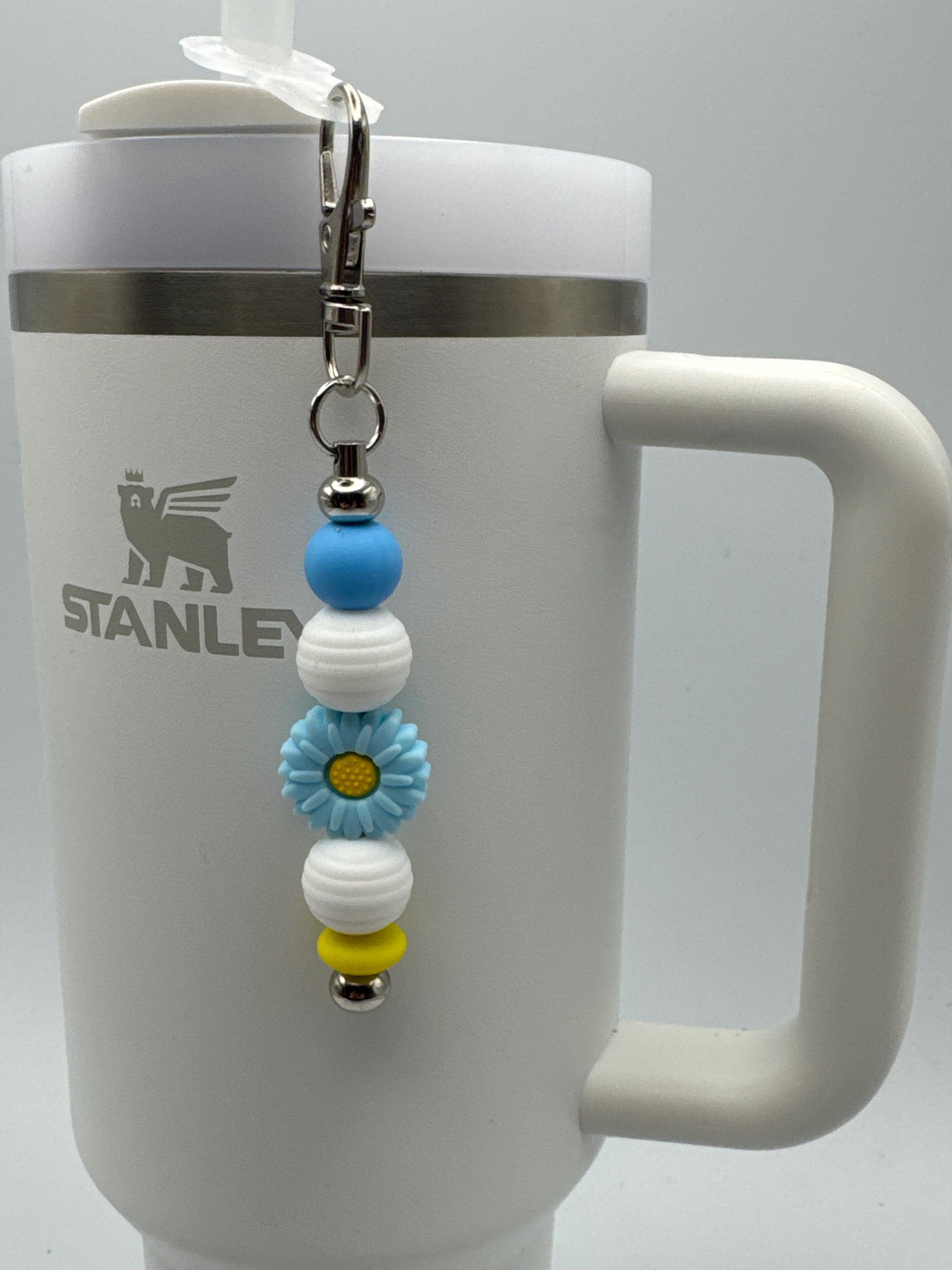 Blue Flower Straw Charm | Stanley Cup Accessories | Flower Key Chain/Purse Charm