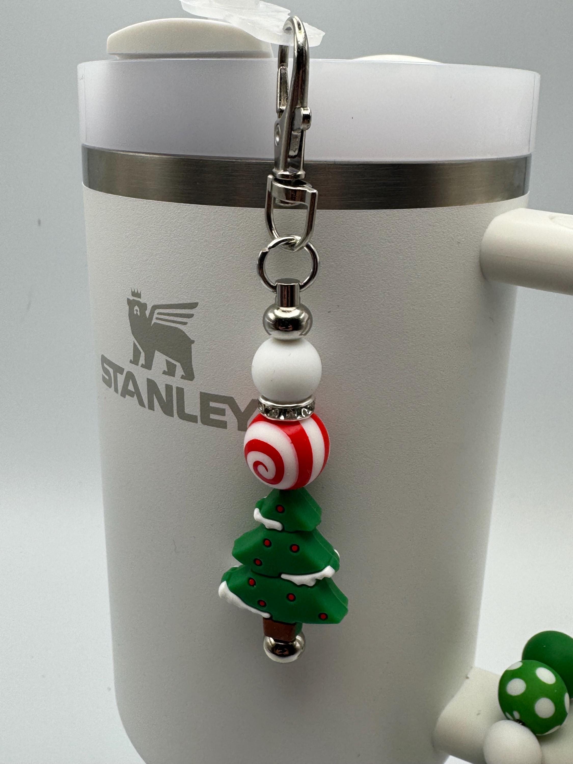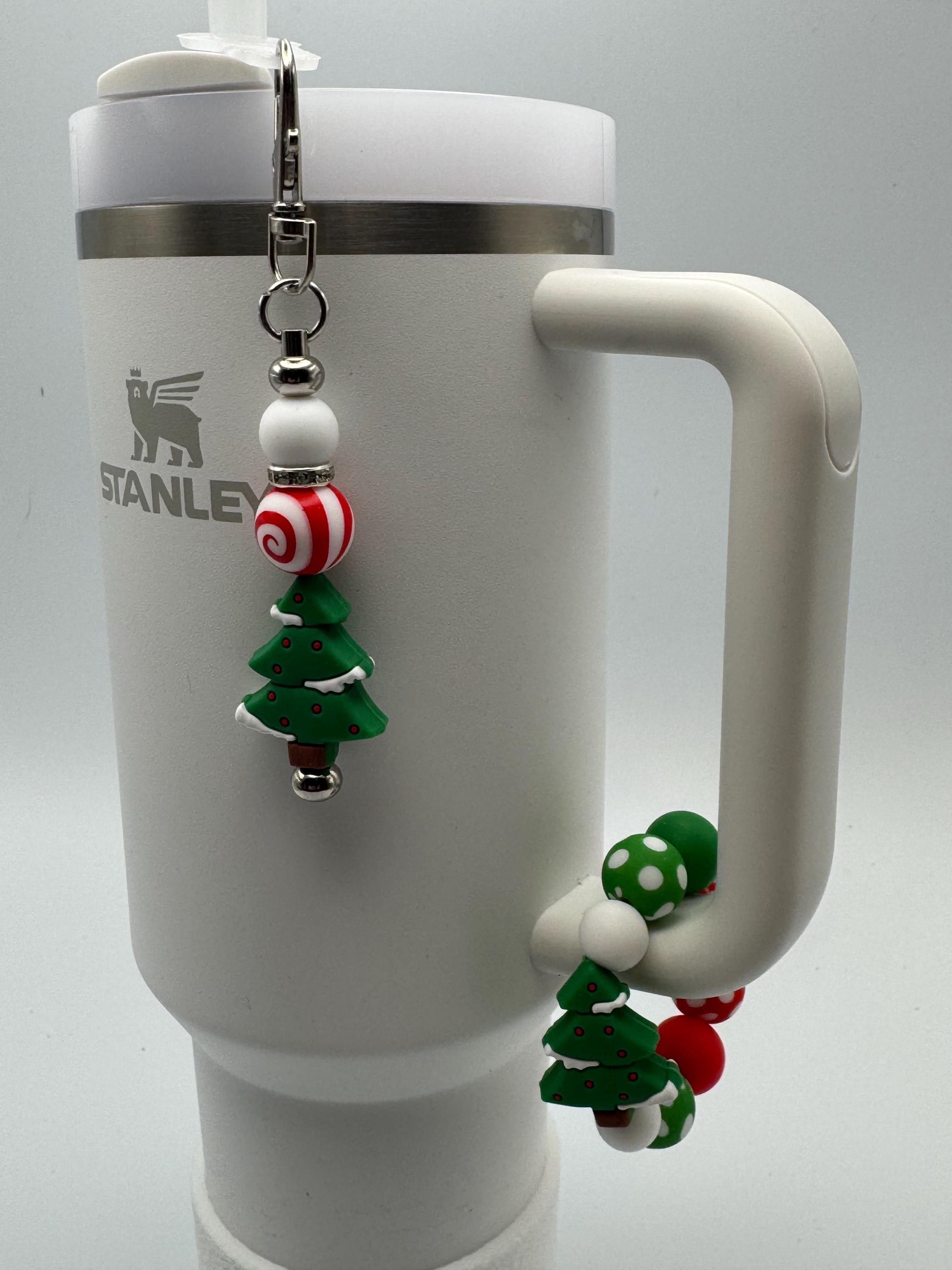 Christmas Tree Tumbler Handle Bracelet | Stanley Cup Accessories | Cup Handle Bracelet | Christmas Tree Straw Charm/Purse Charm