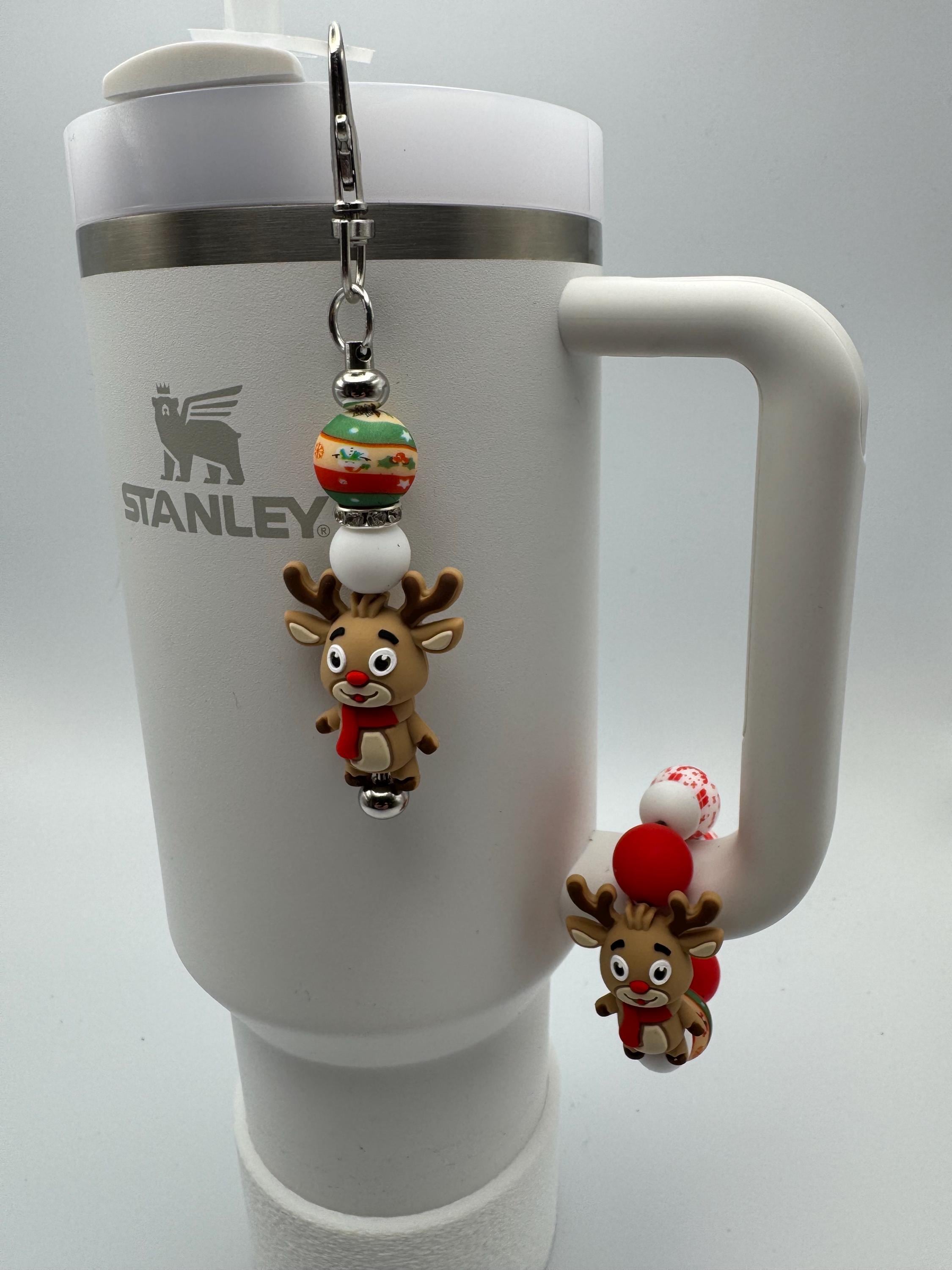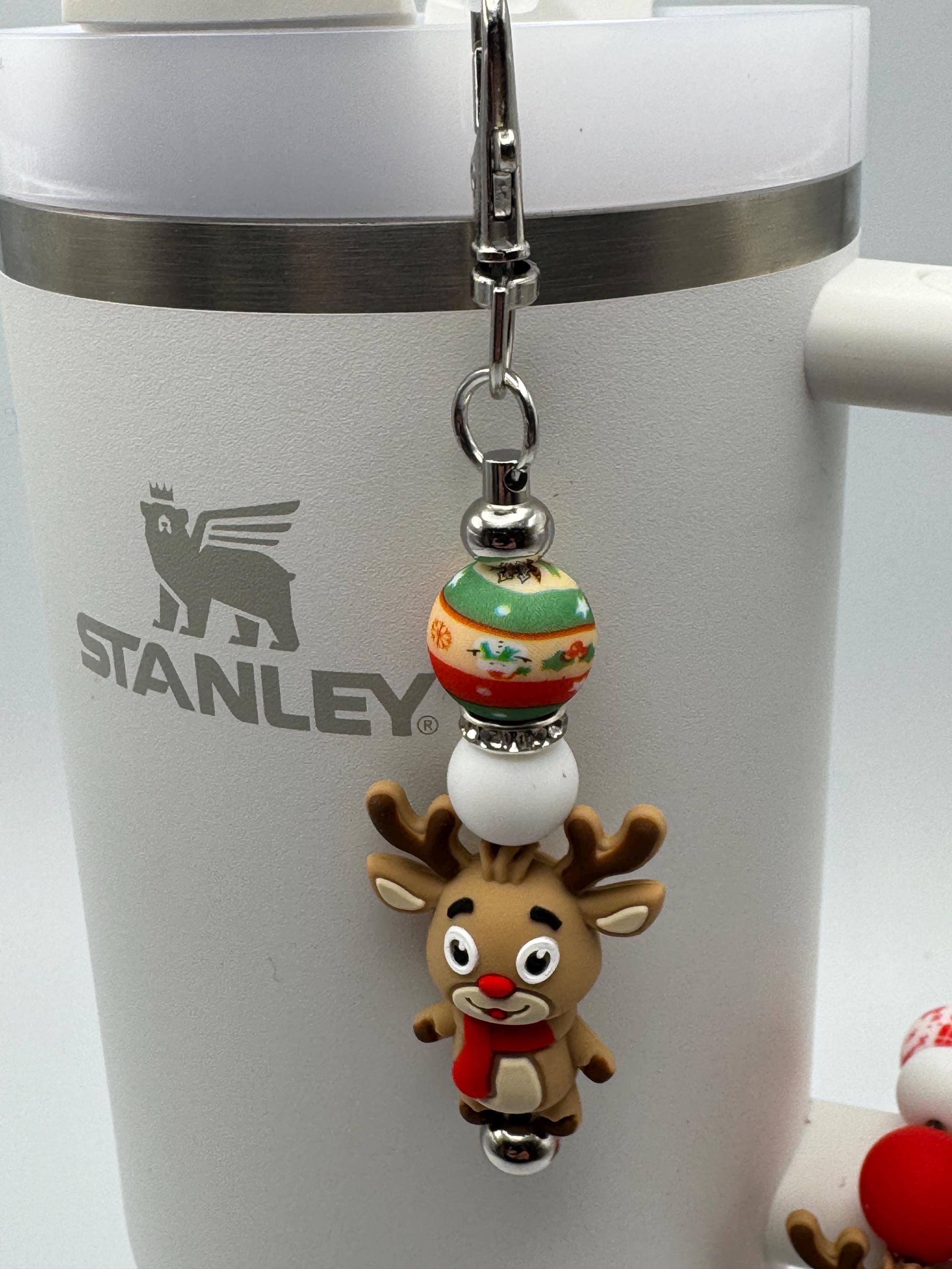 Reindeer Tumbler Handle Bracelet | Stanley Cup Accessories | Cup Handle Bracelet | Reindeer Straw Charm/Purse Charm