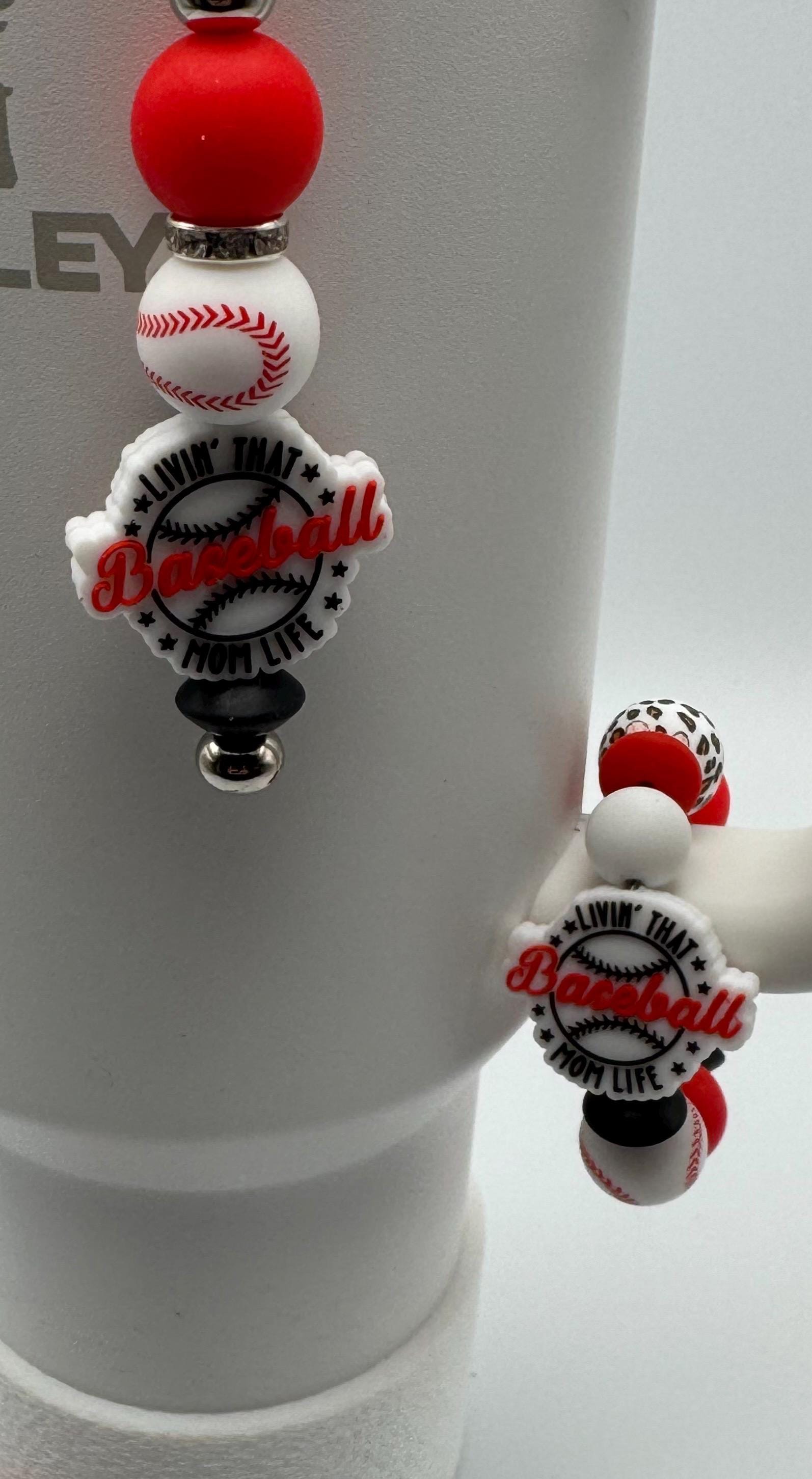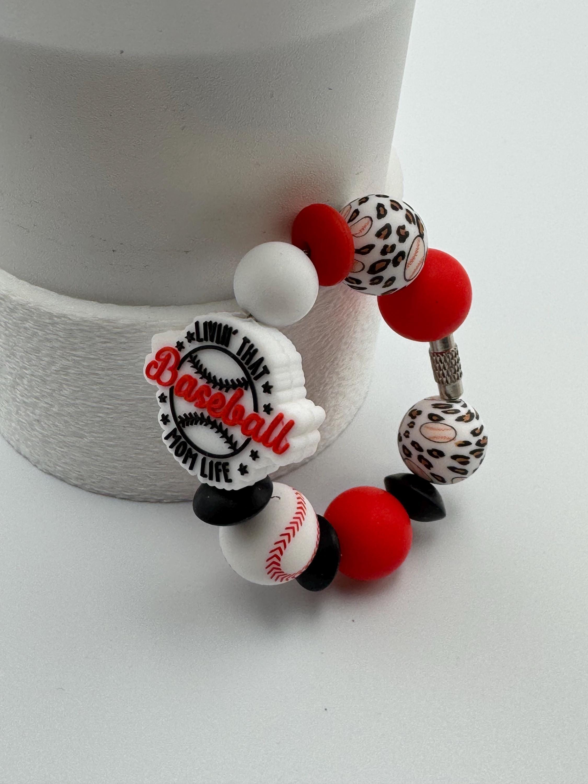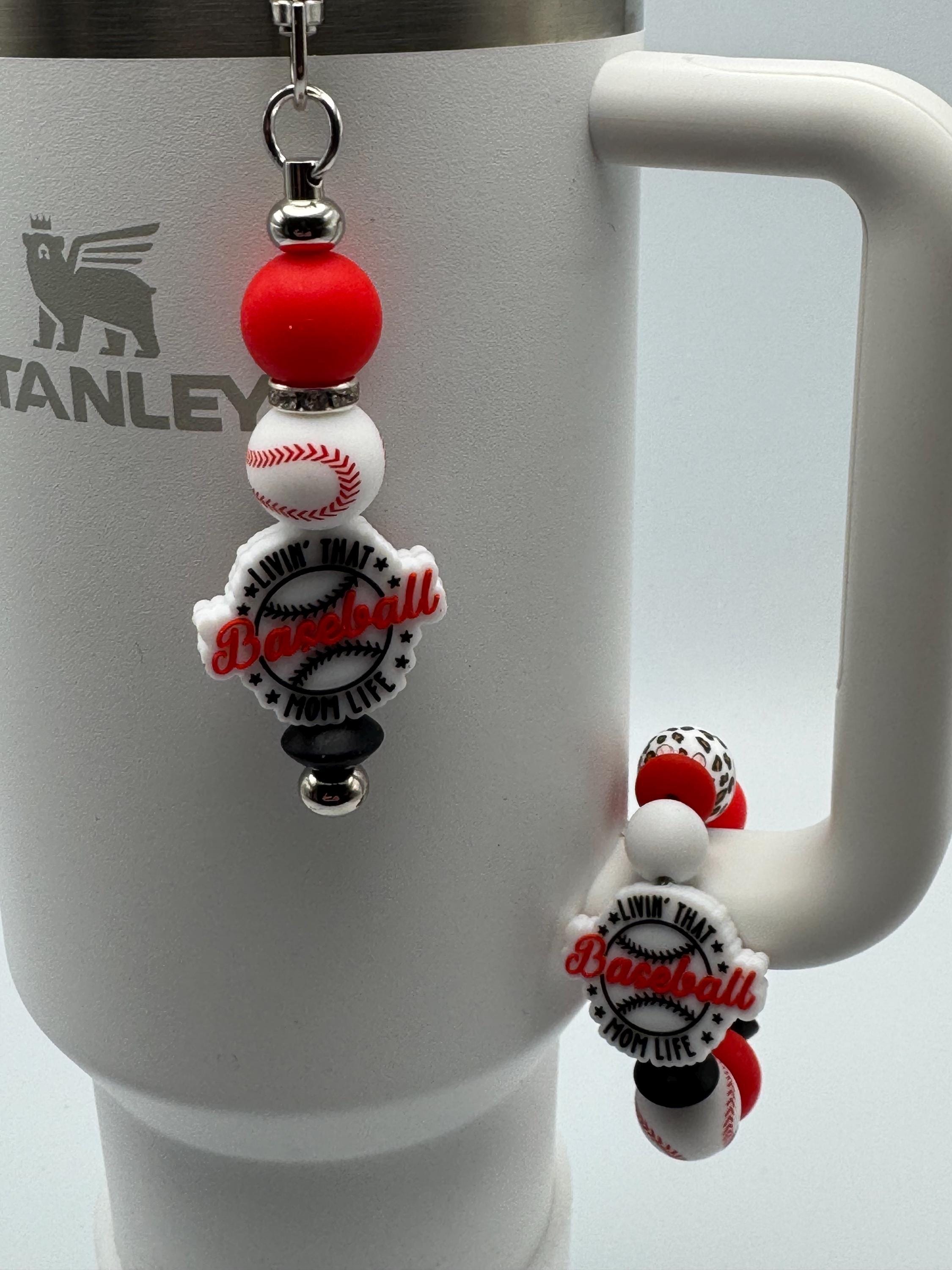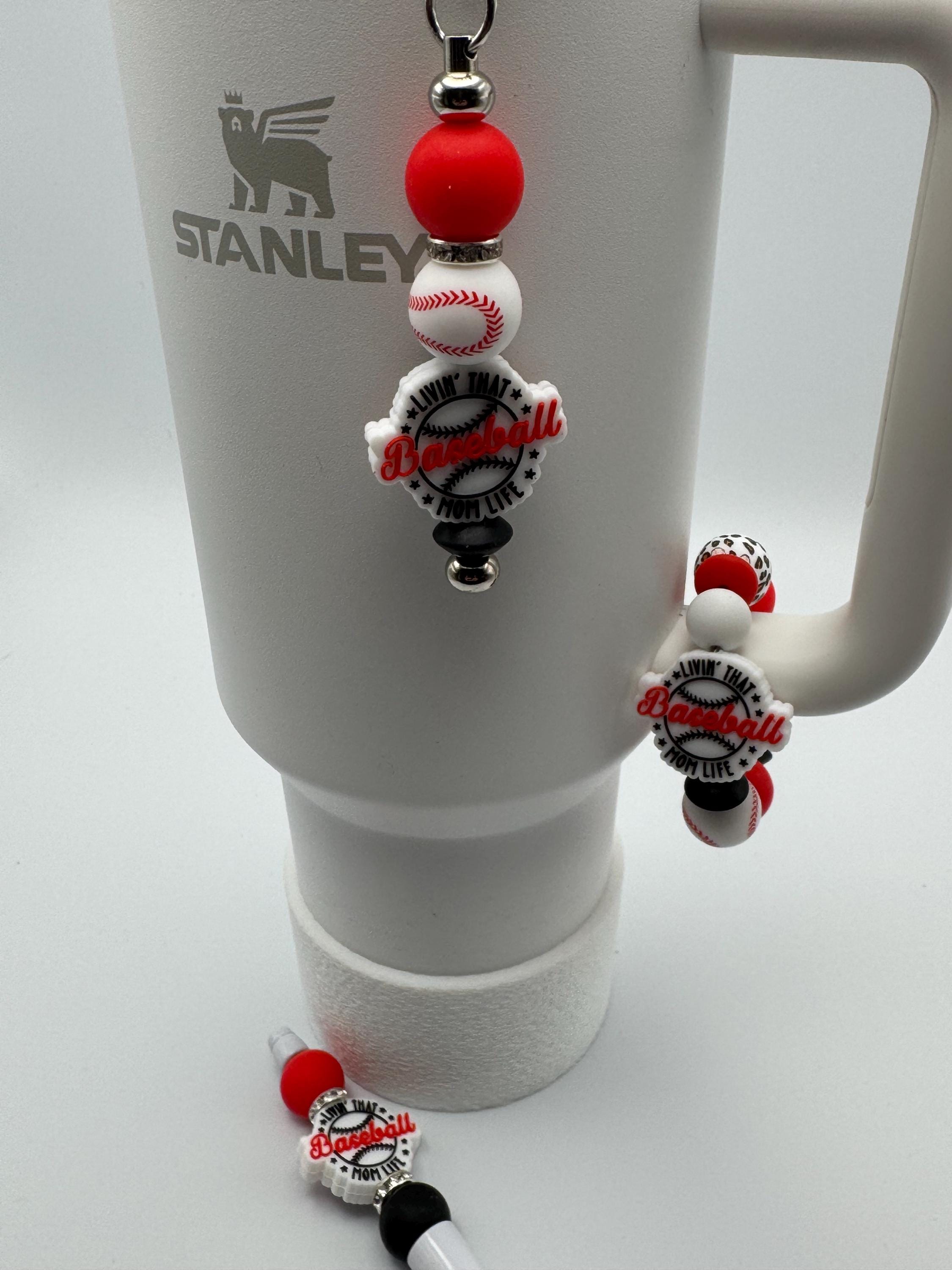 Baseball “Mom” Life Tumbler Set | Stanley Cup Accessories | Cup Handle Bracelet | Baseball Straw Charm | Baseball Handle Bracelet