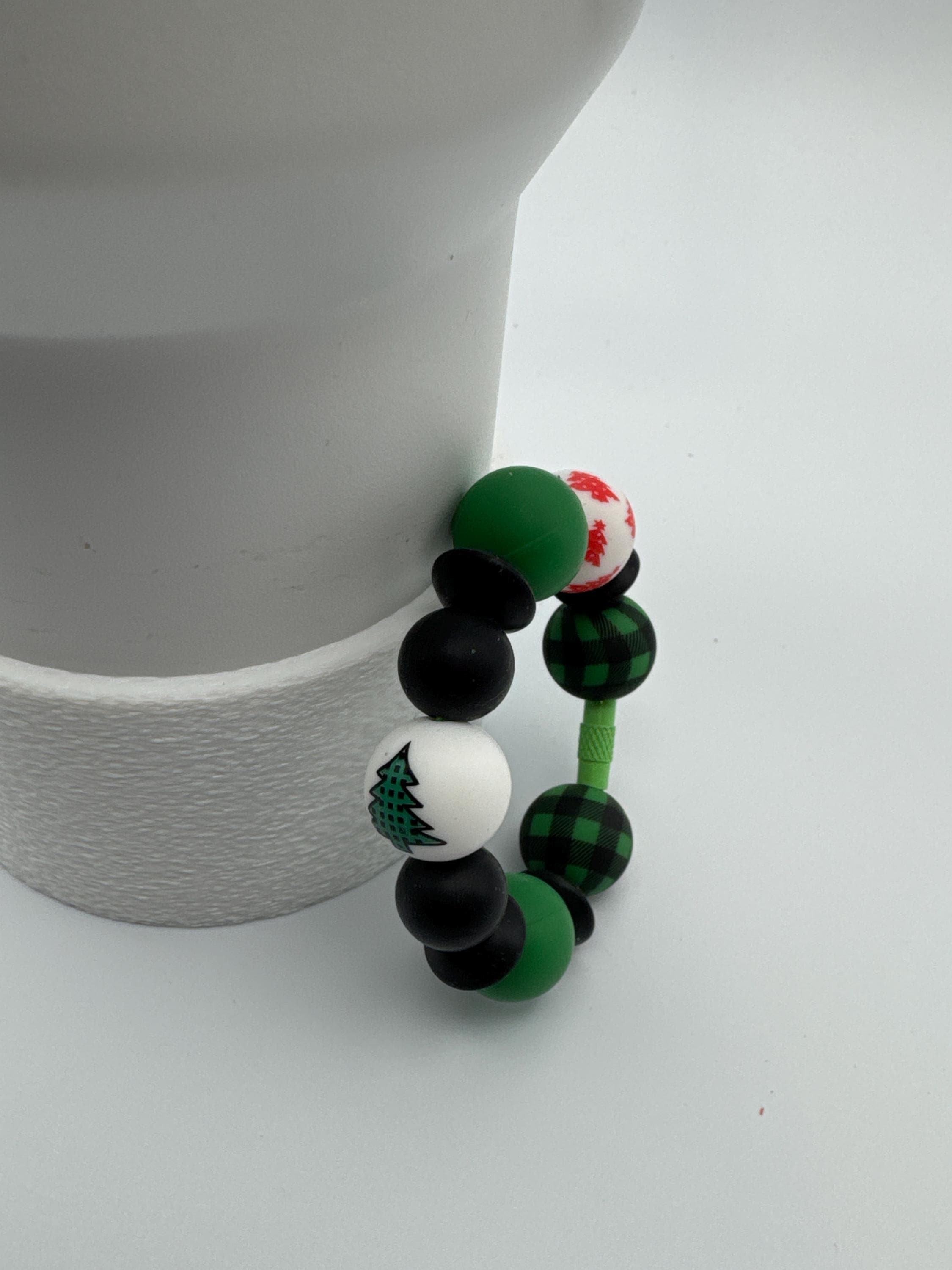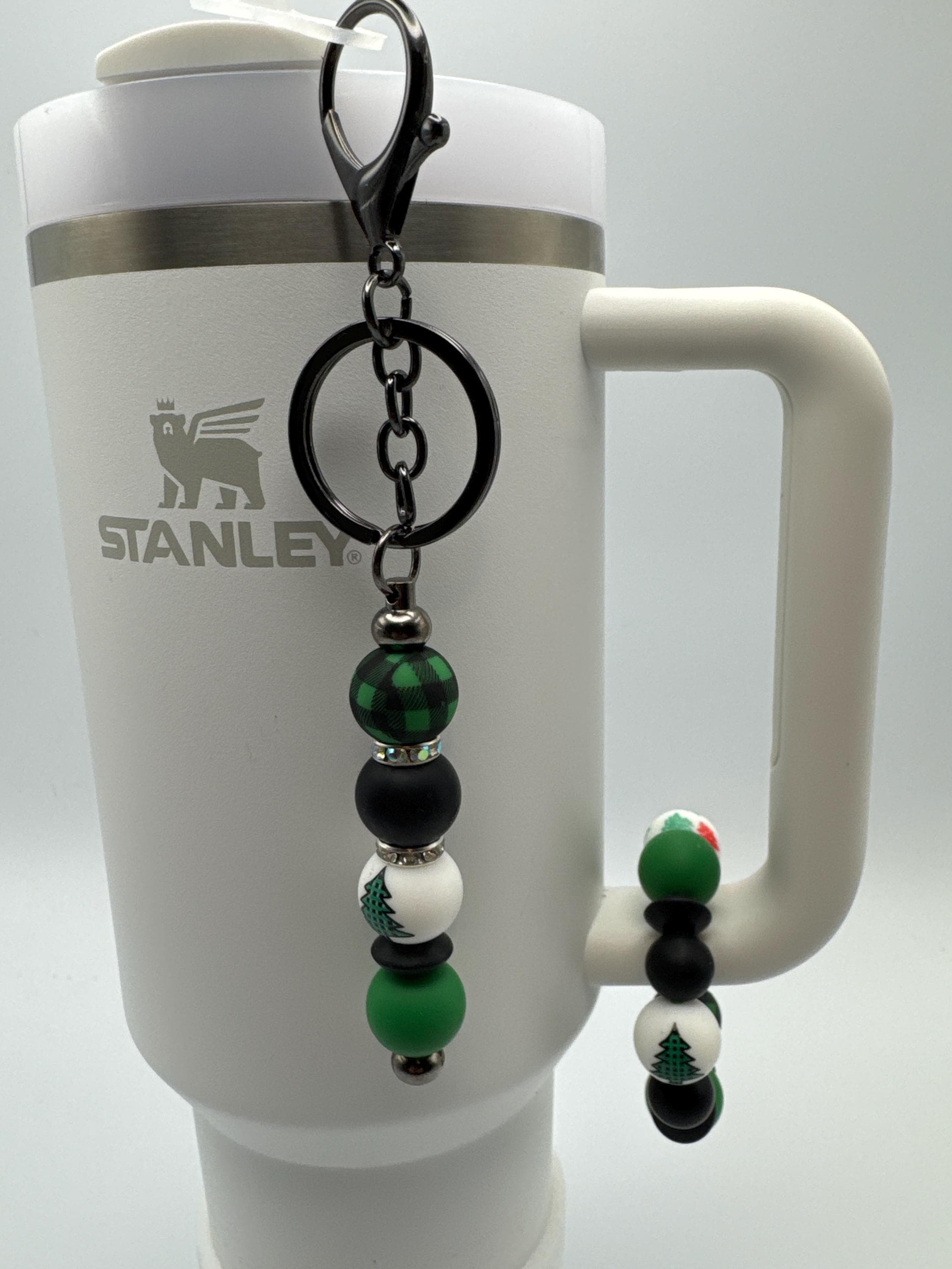 Green Christmas Tree Tumbler Handle Bracelet | Stanley Cup Accessories | Cup Handle Bracelet | Green Plaid Straw Charm/Purse Charm