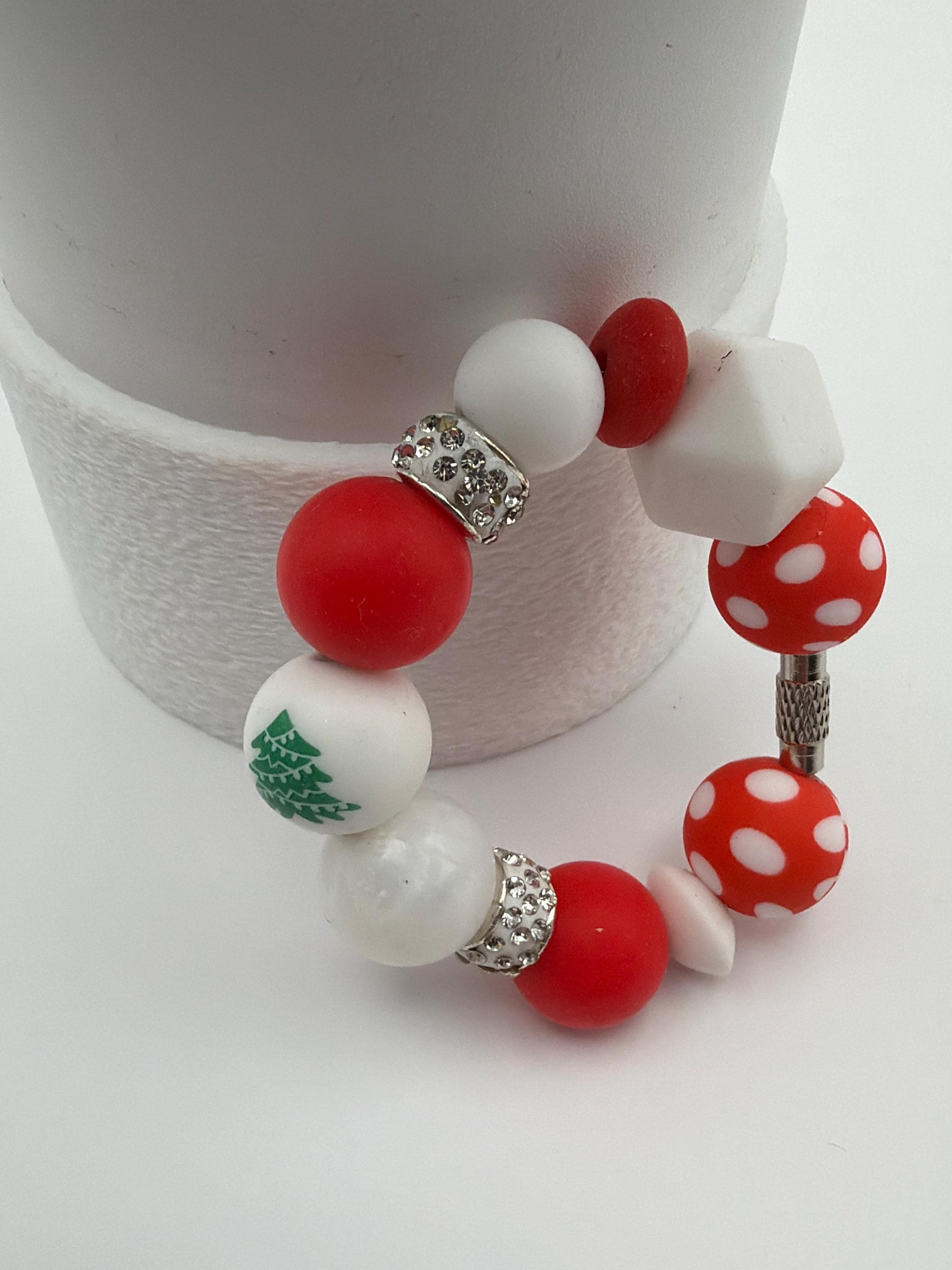 Christmas Tree Tumbler Handle Bracelet | Stanley Cup Accessories | Cup Handle Bracelet | Christmas Straw Charm/Purse Charm