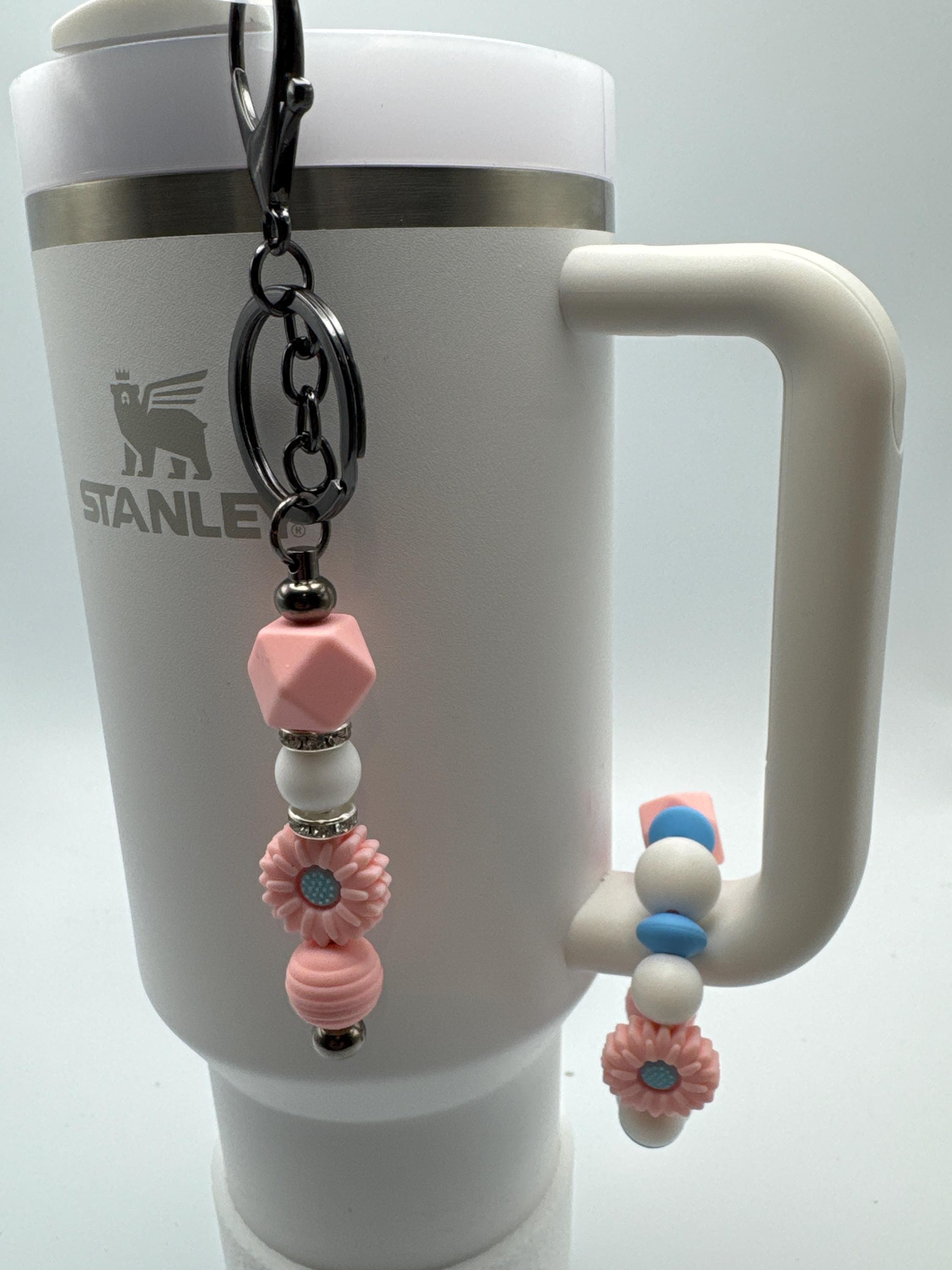 Pink Flower Tumbler Set | Stanley Cup Accessories | Cup Handle Bracelet | Pink Flower Charm