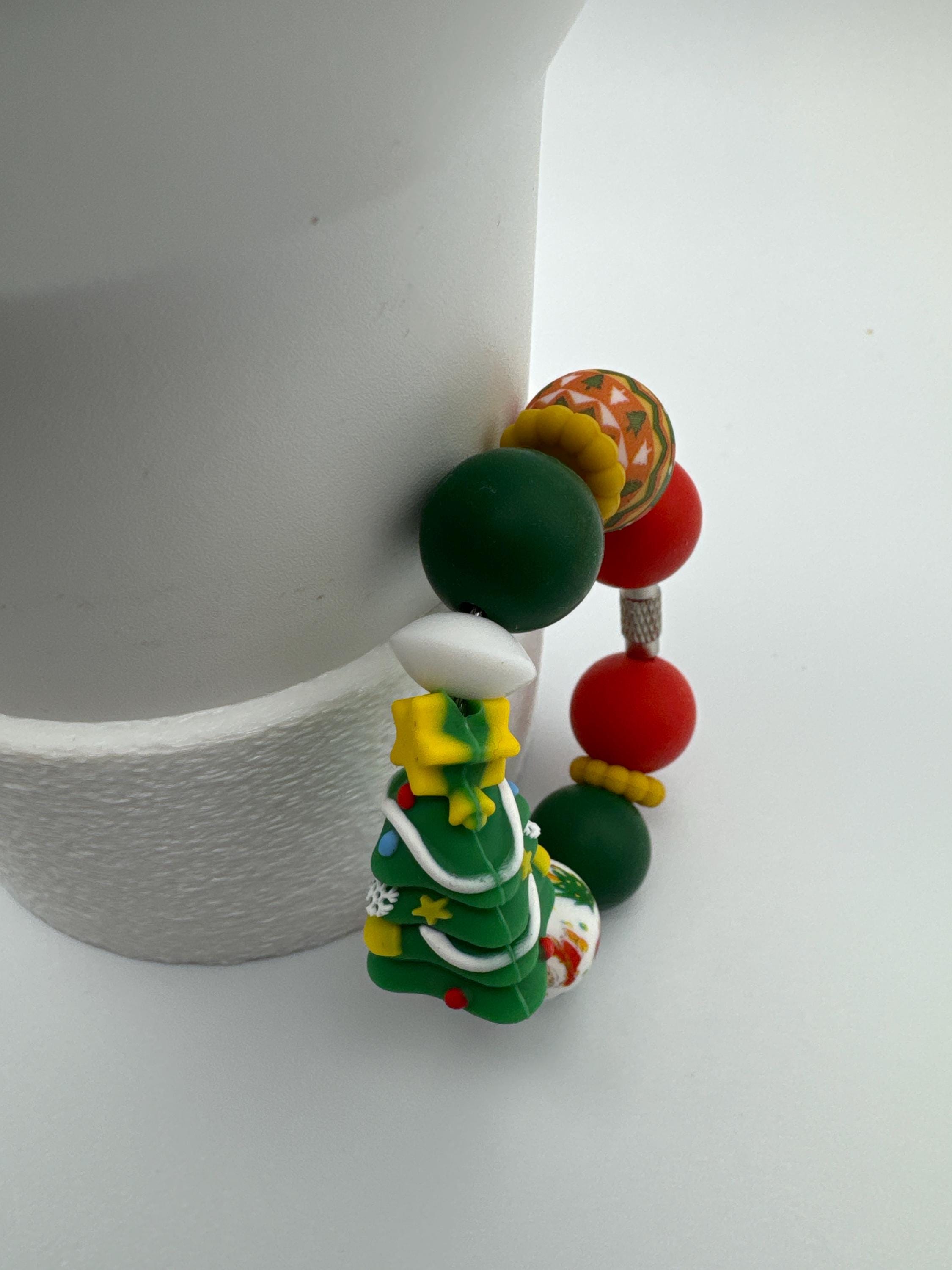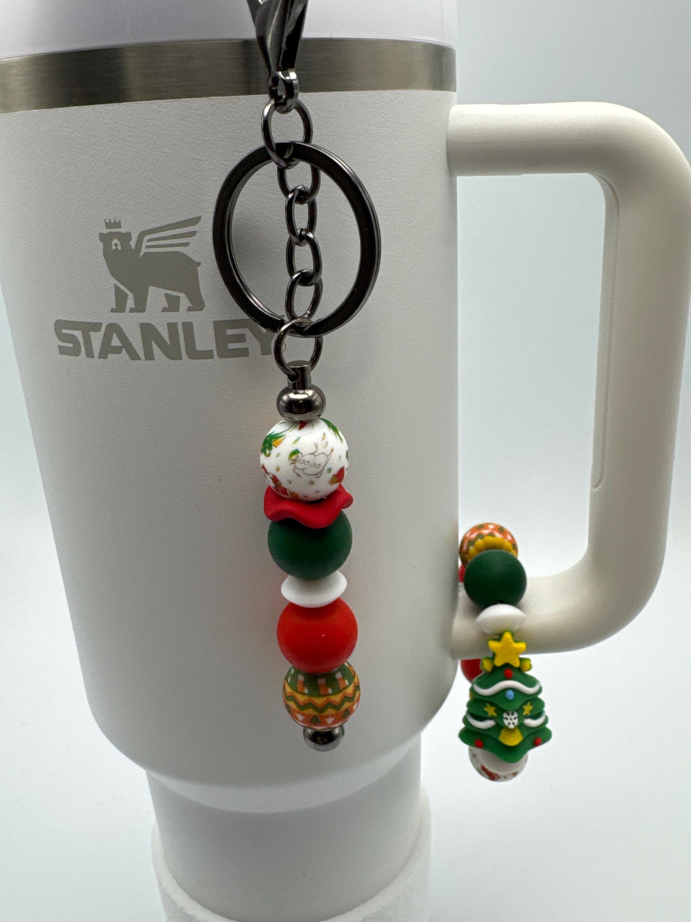Christmas Tree Tumbler Set | Stanley Cup Accessories | Cup Handle Bracelet | Christmas Tree Straw Charm/Purse Charm