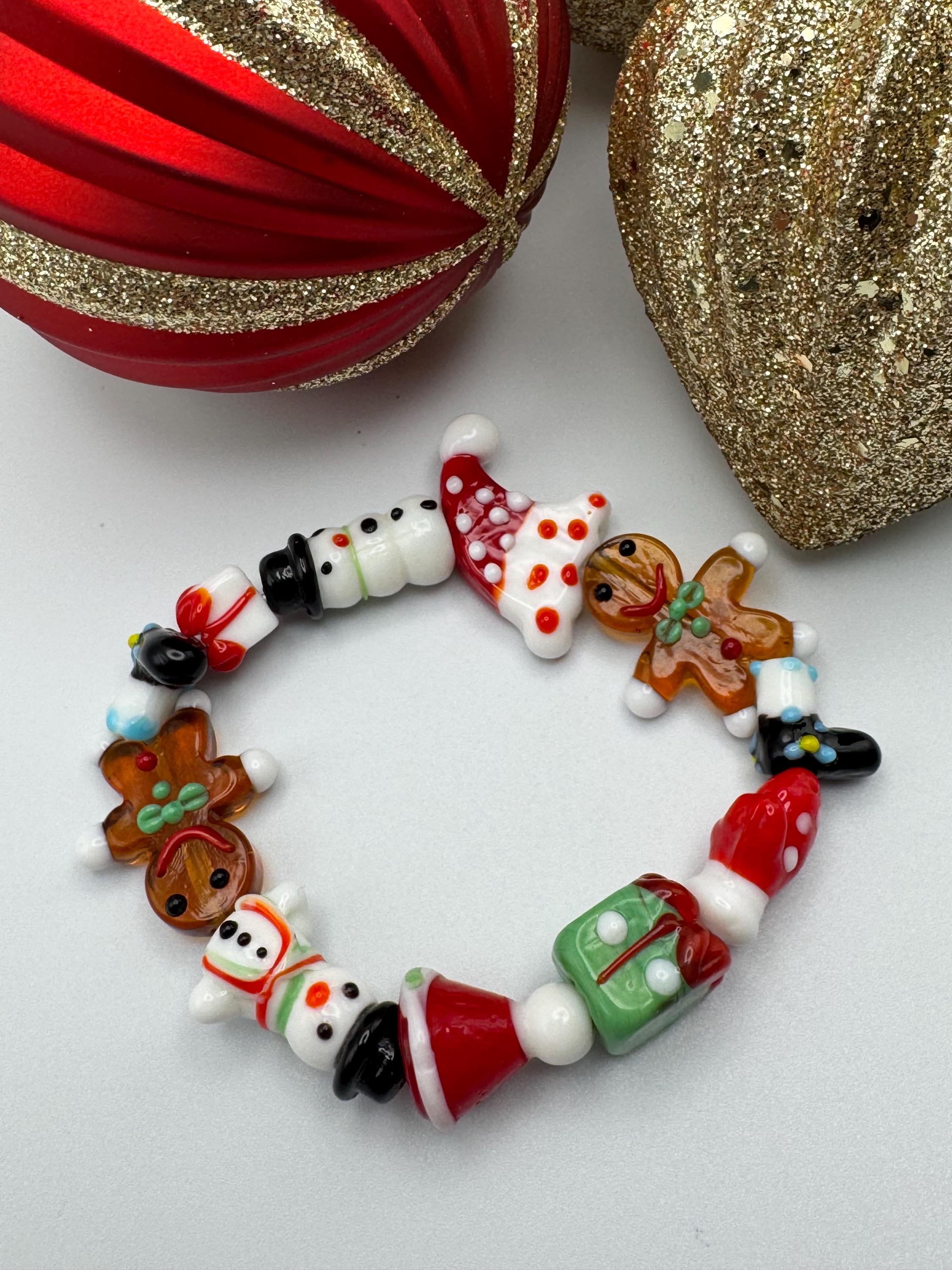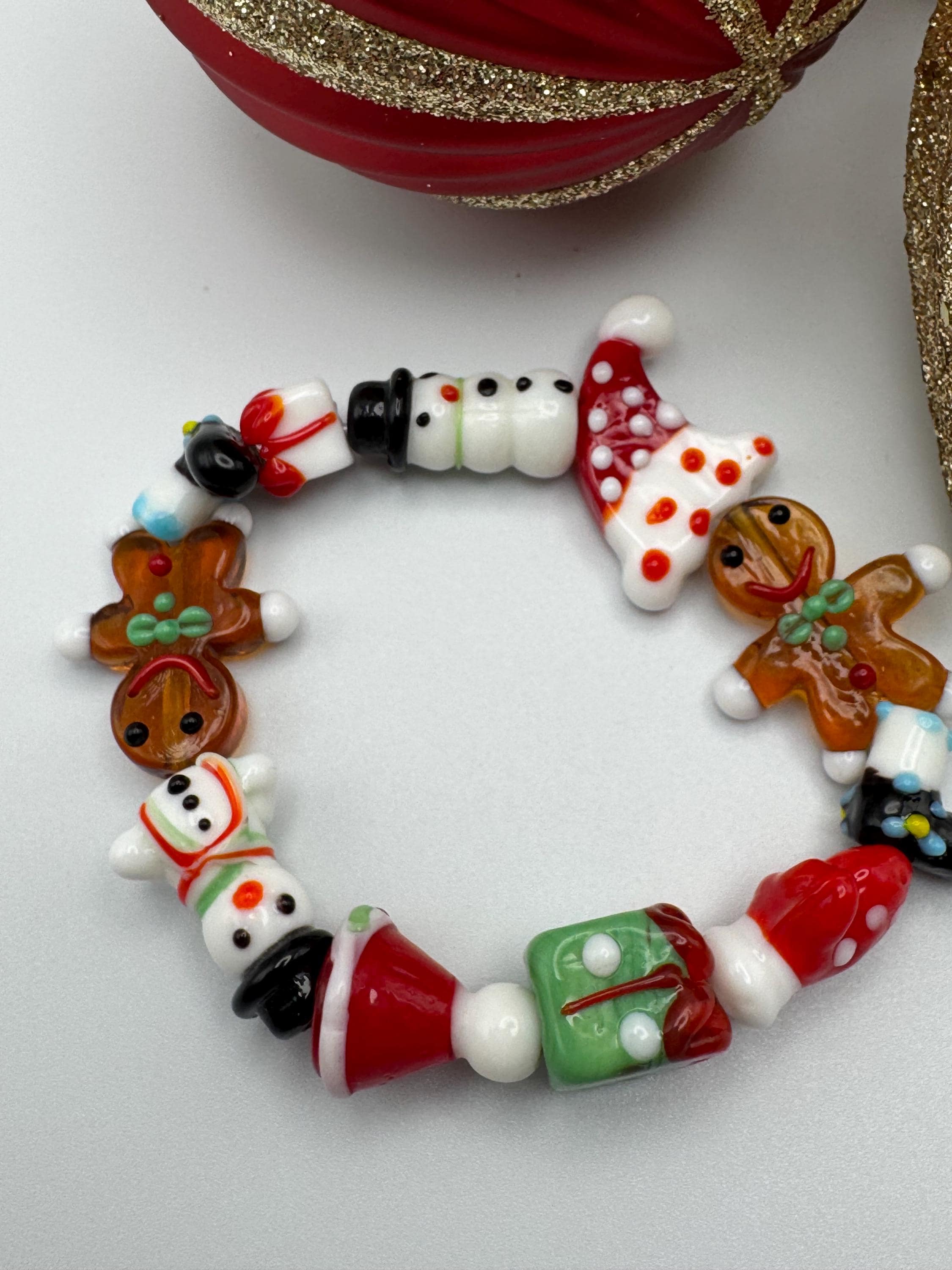 This bracelet is made with a mix of Lampwork Christmas beads.