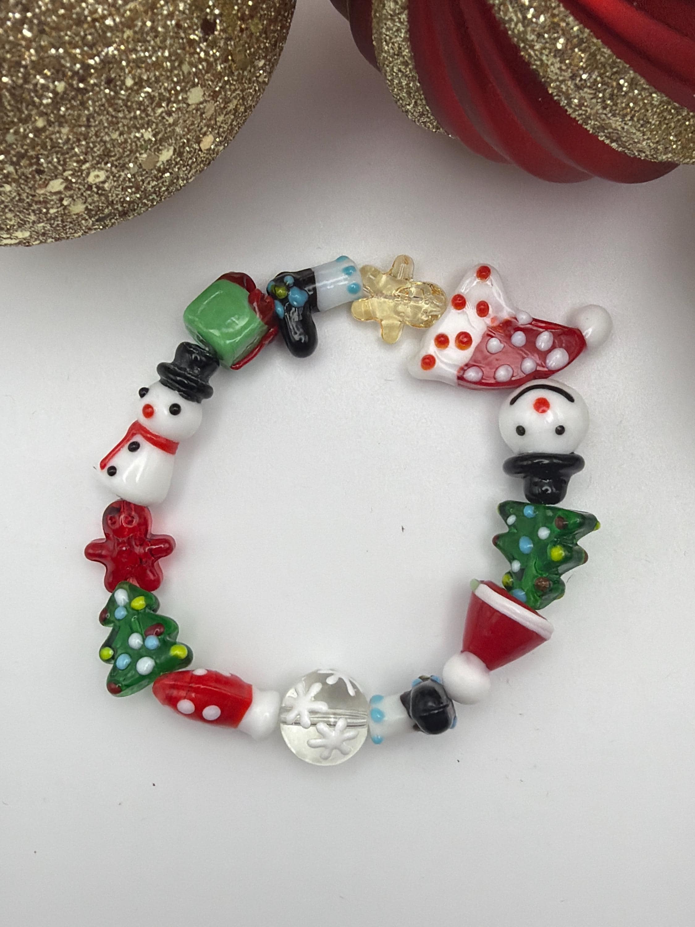 This bracelet is made with a mix of Lampwork Christmas beads.