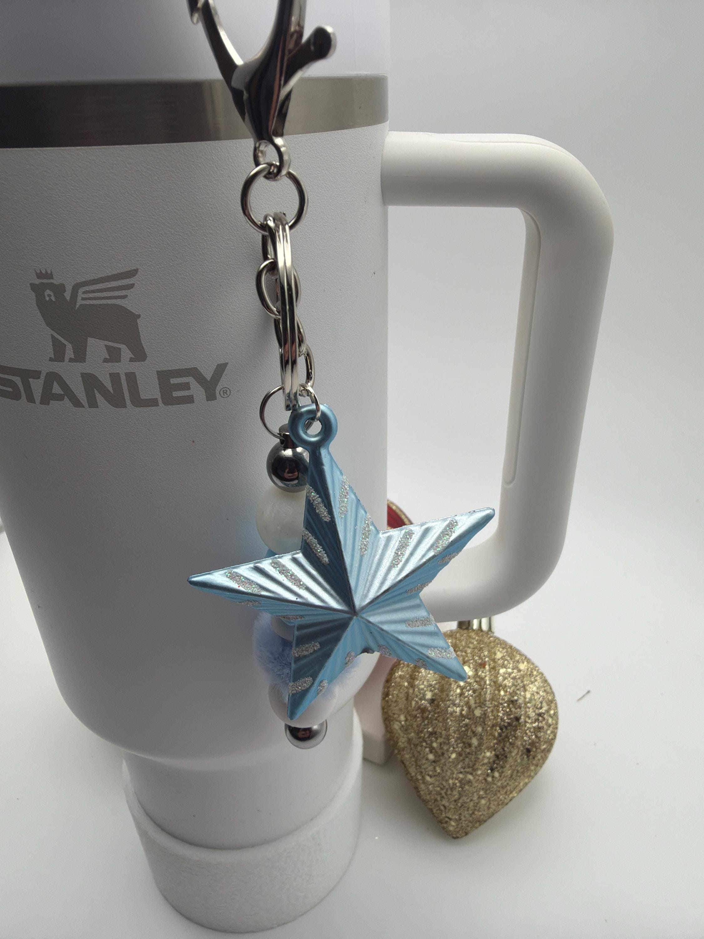 Blue Christmas Star Straw Charm | Stanley Cup Accessories | Christmas Themed Straw Charm