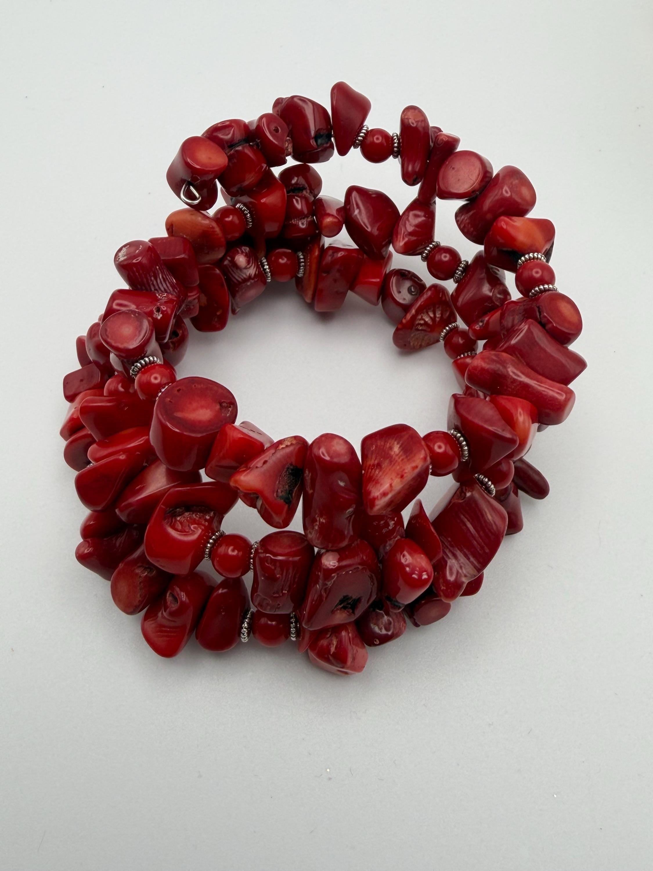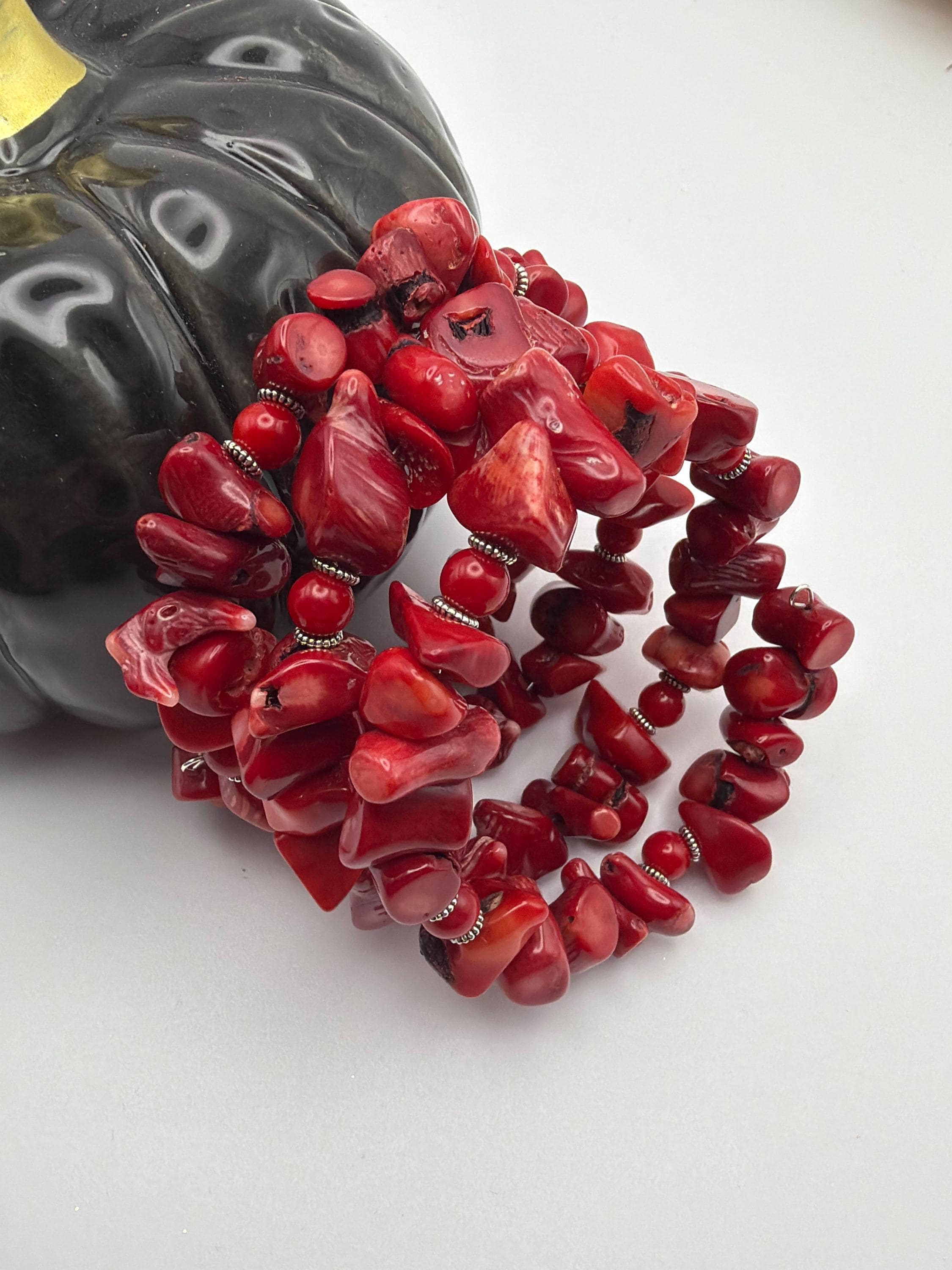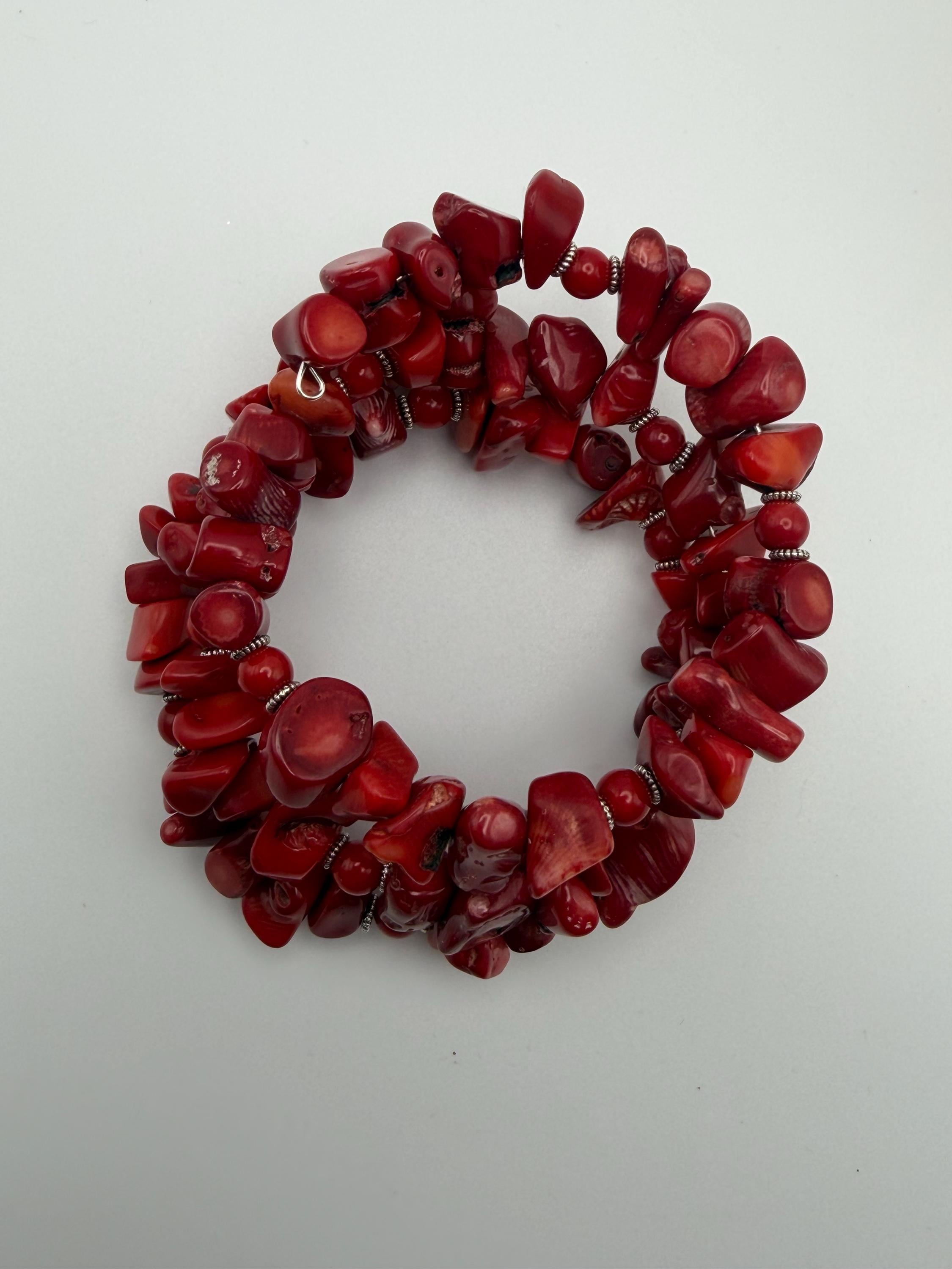 Experience the captivating allure of our Red Coral Memory Wire Bracelet, a stunning wrap bracelet that exudes elegance and sophistication.