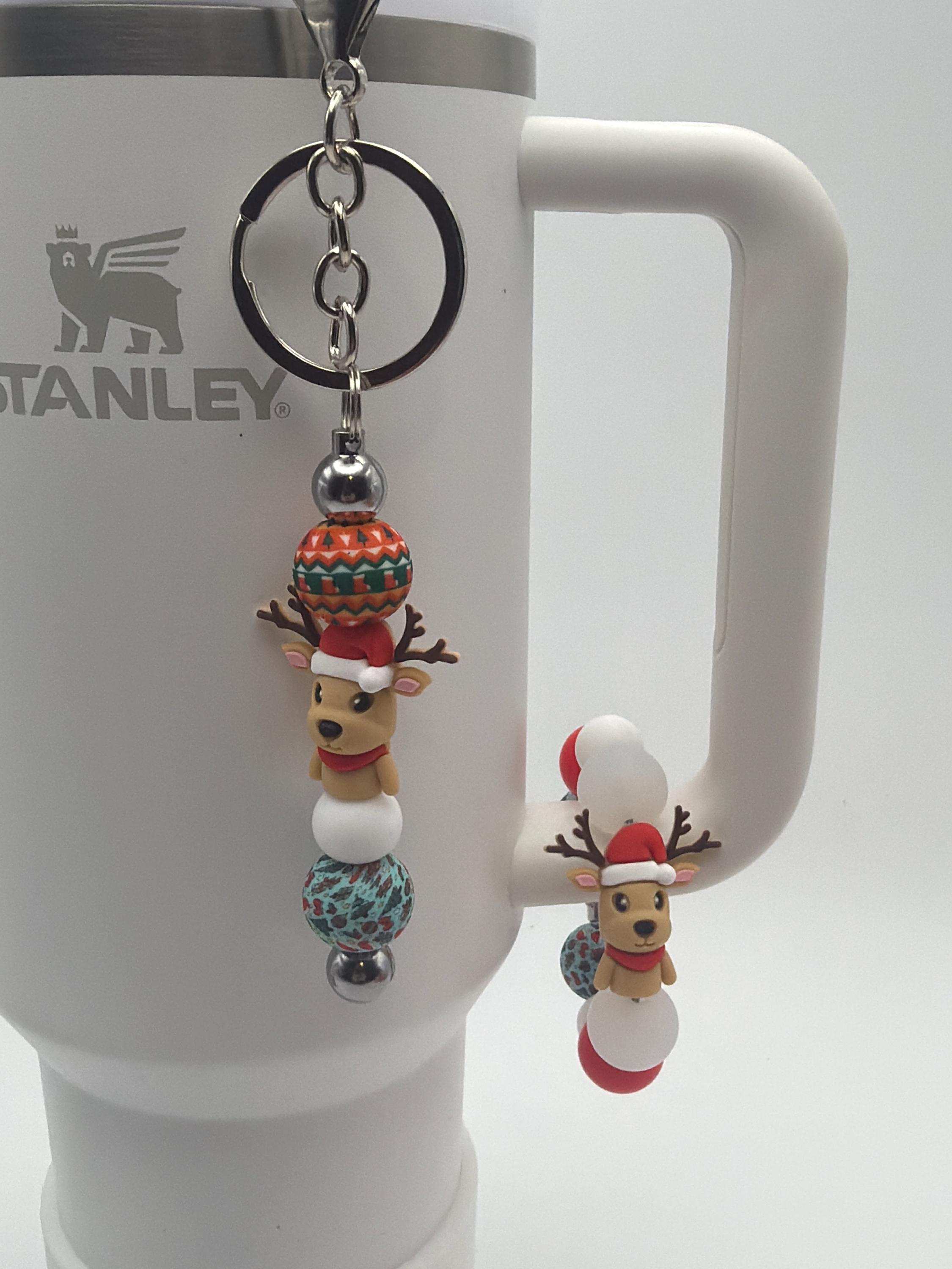 Reindeer Tumbler Handle Bracelet | Stanley Cup Accessories | Cup Handle Bracelet | Reindeer Straw Charm/Purse Charm