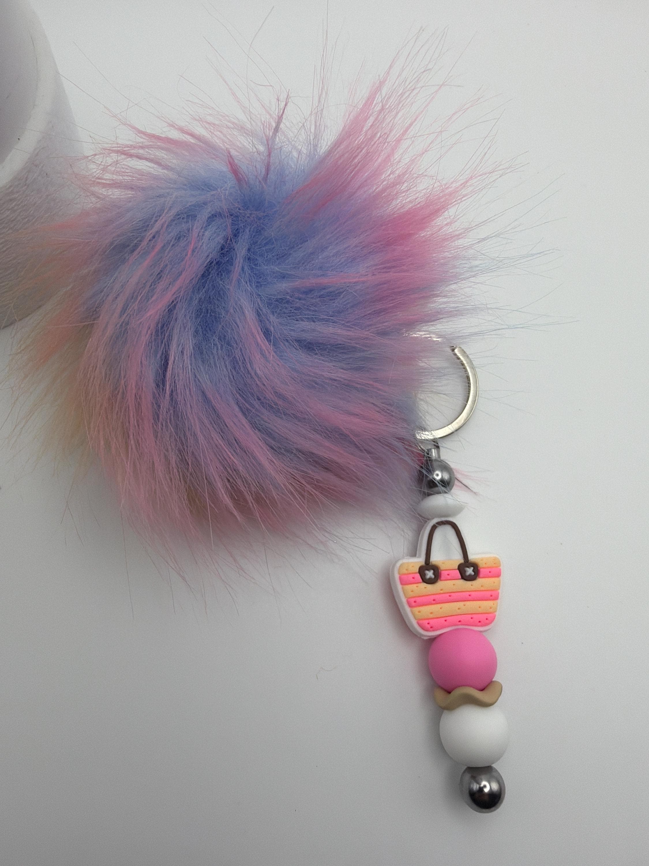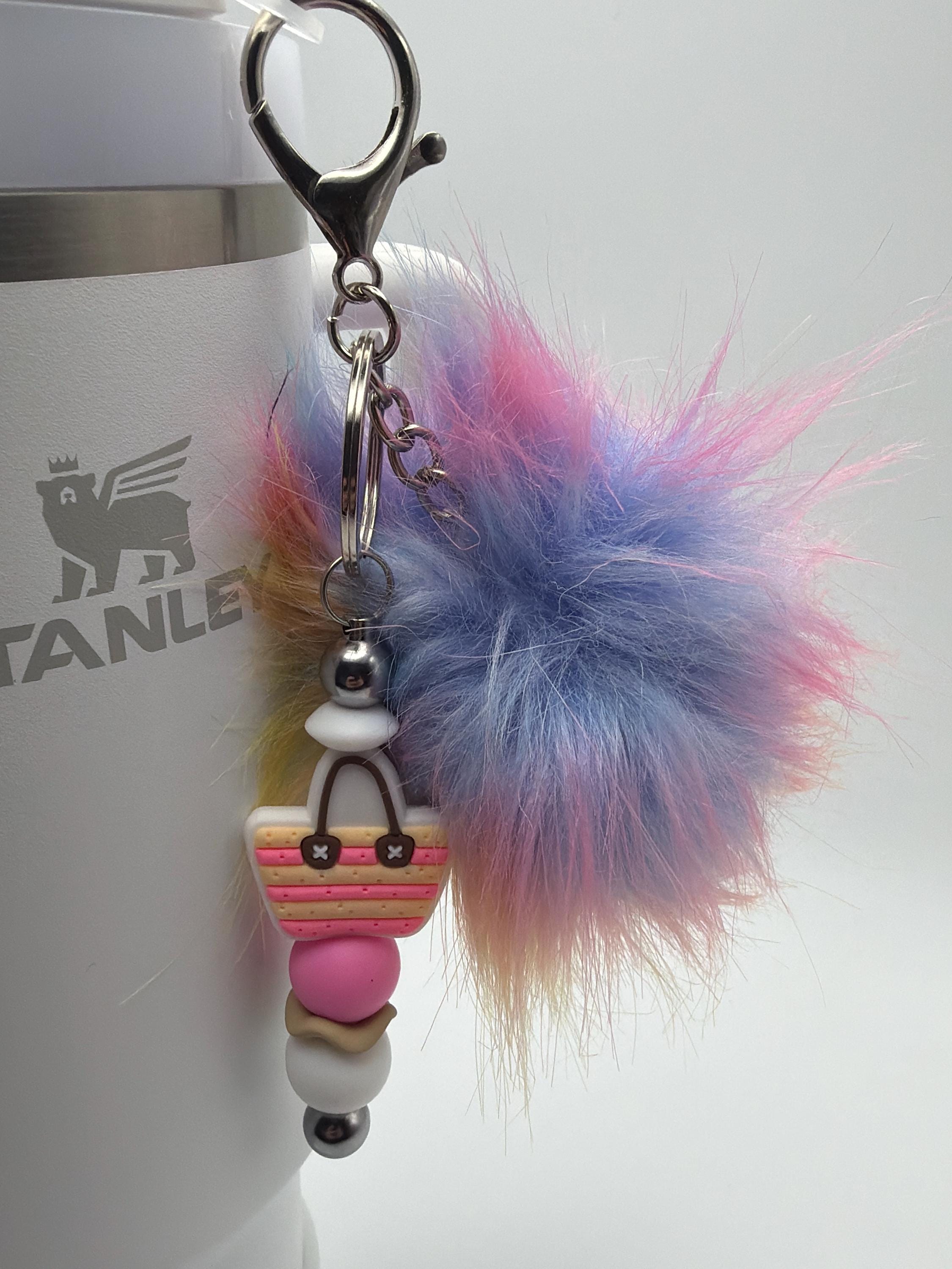 Fuzzy Pom Pom Tumbler Straw Charm | Stanley Cup Accessories | Pom Pom Key Chain | Girly Straw Charm/Purse Charm