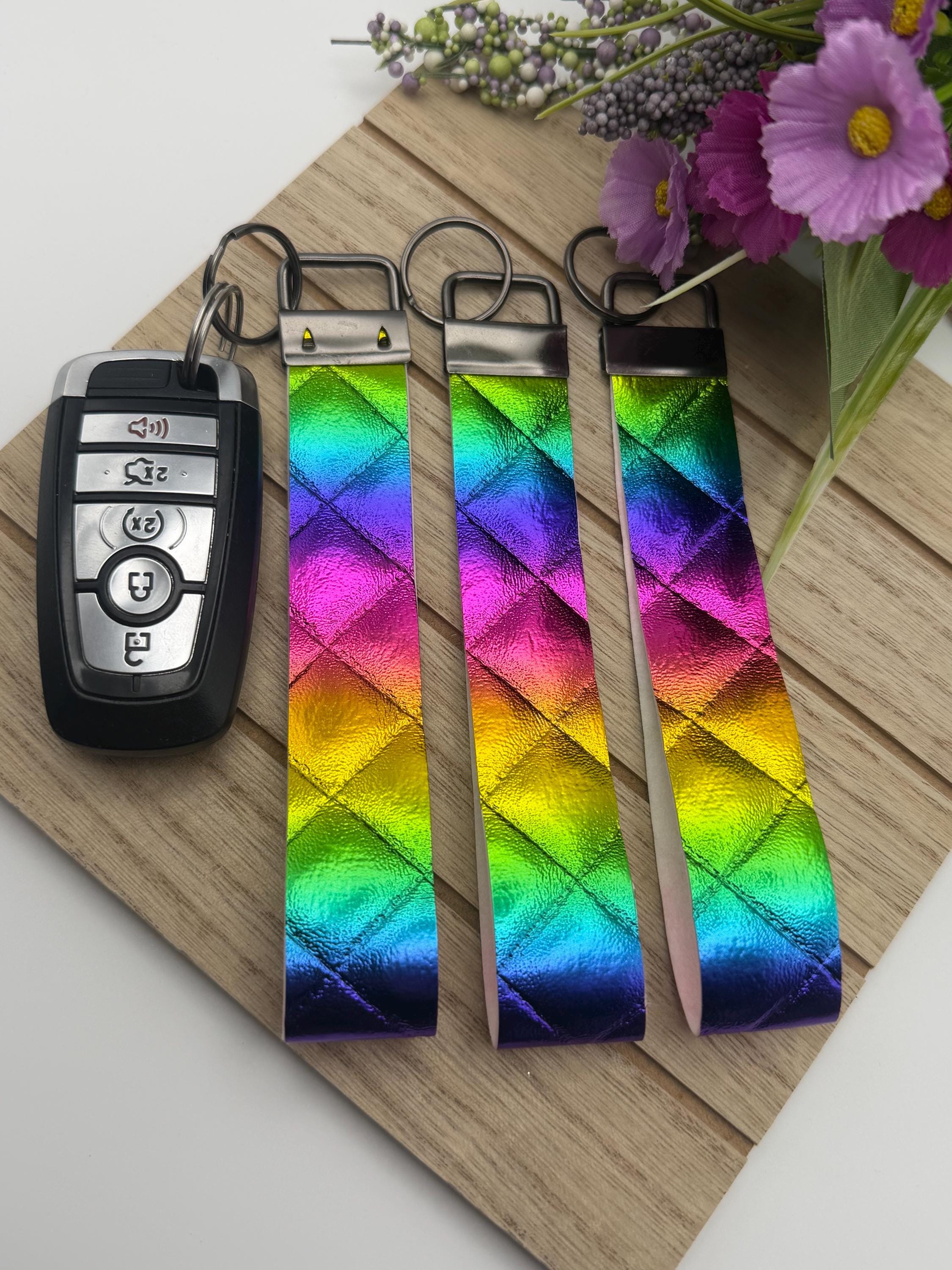Faux Leather Wristlet Keychain | Colorful Key Fob Keychain |