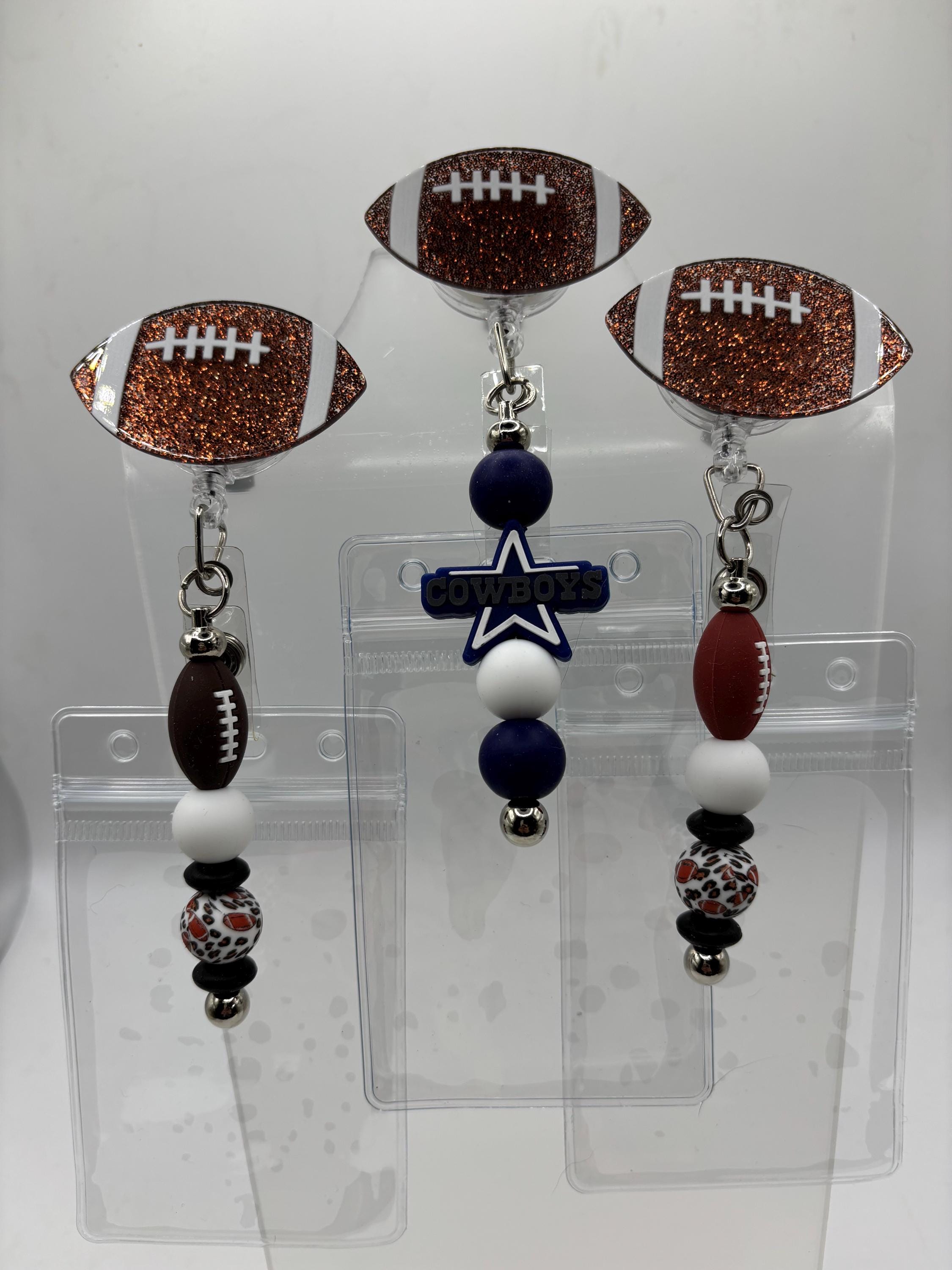 Football Badge Reel | Retractable Badge Holder | Silicone Beads | Football | Options Available |