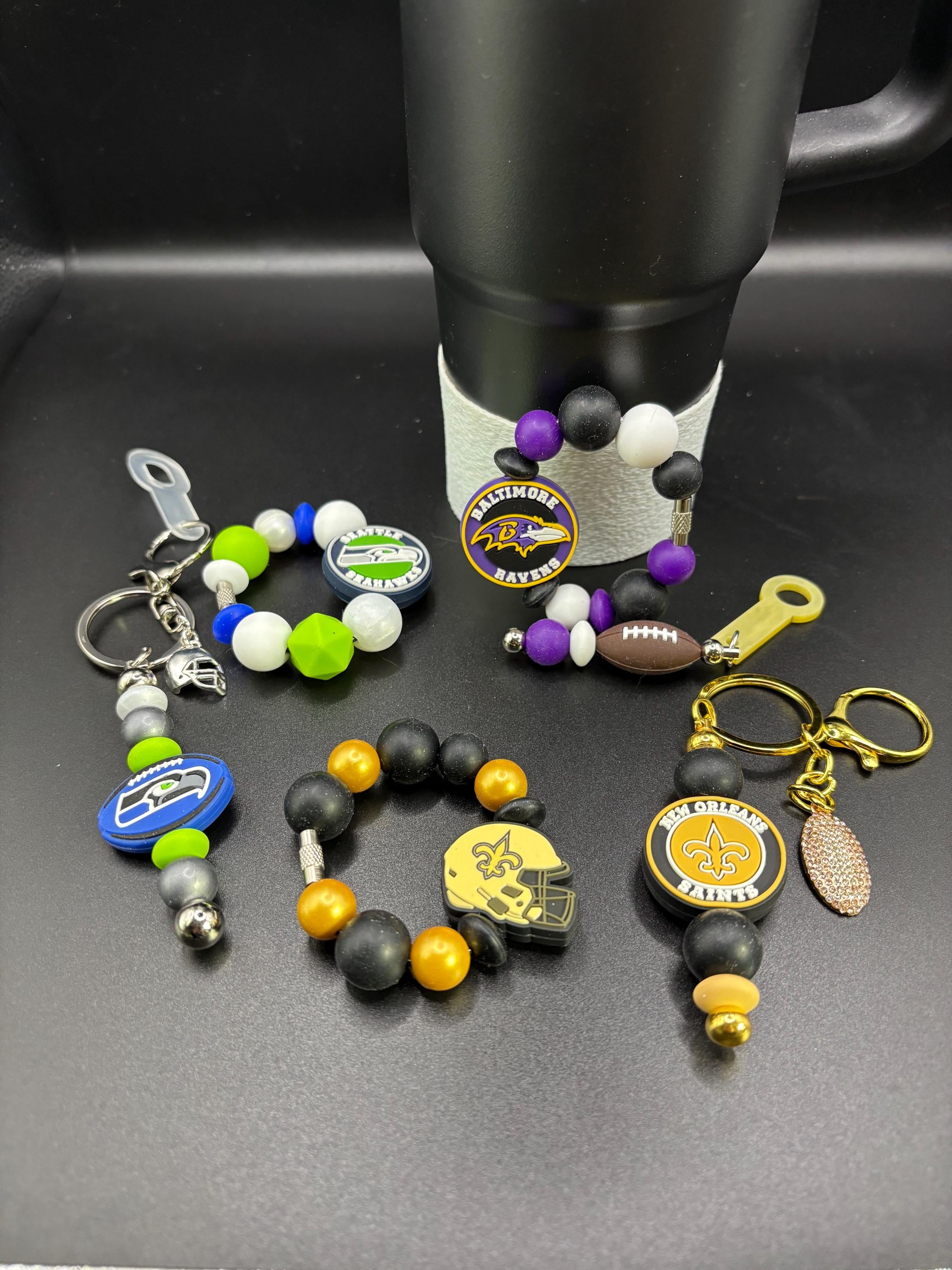 Sports Tumbler Handle Bracelet | Stanley Cup Accessories | Cup Handle Bracelet | Straw Charm | Football | Many Options Available |