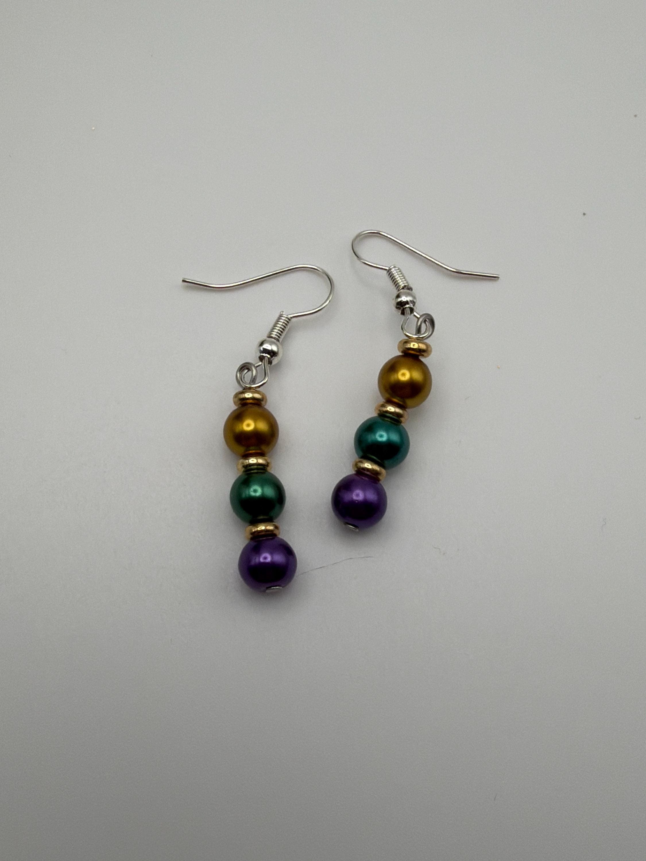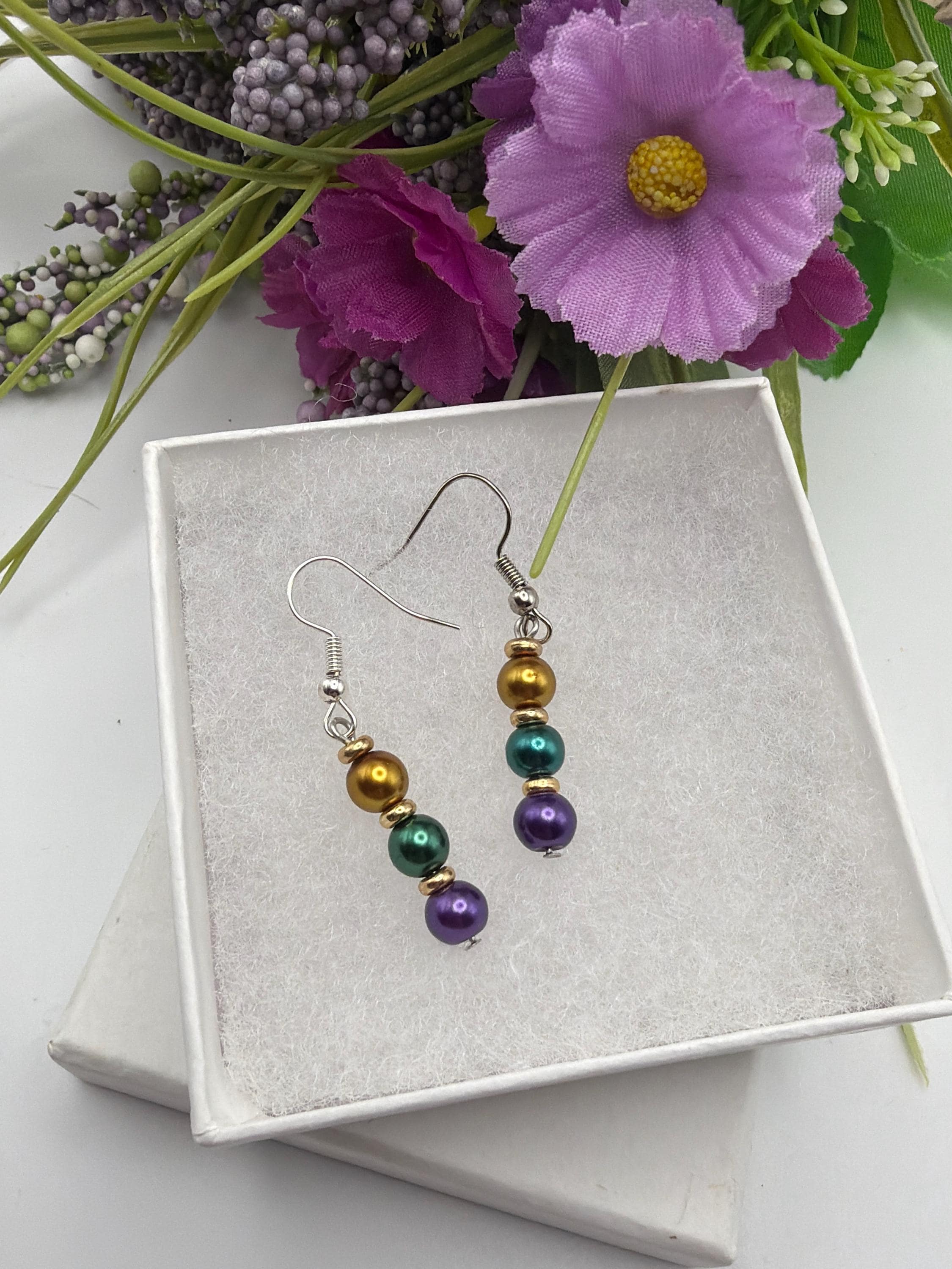 Pearl Bead Earring | Mardi Gras Color Earrings