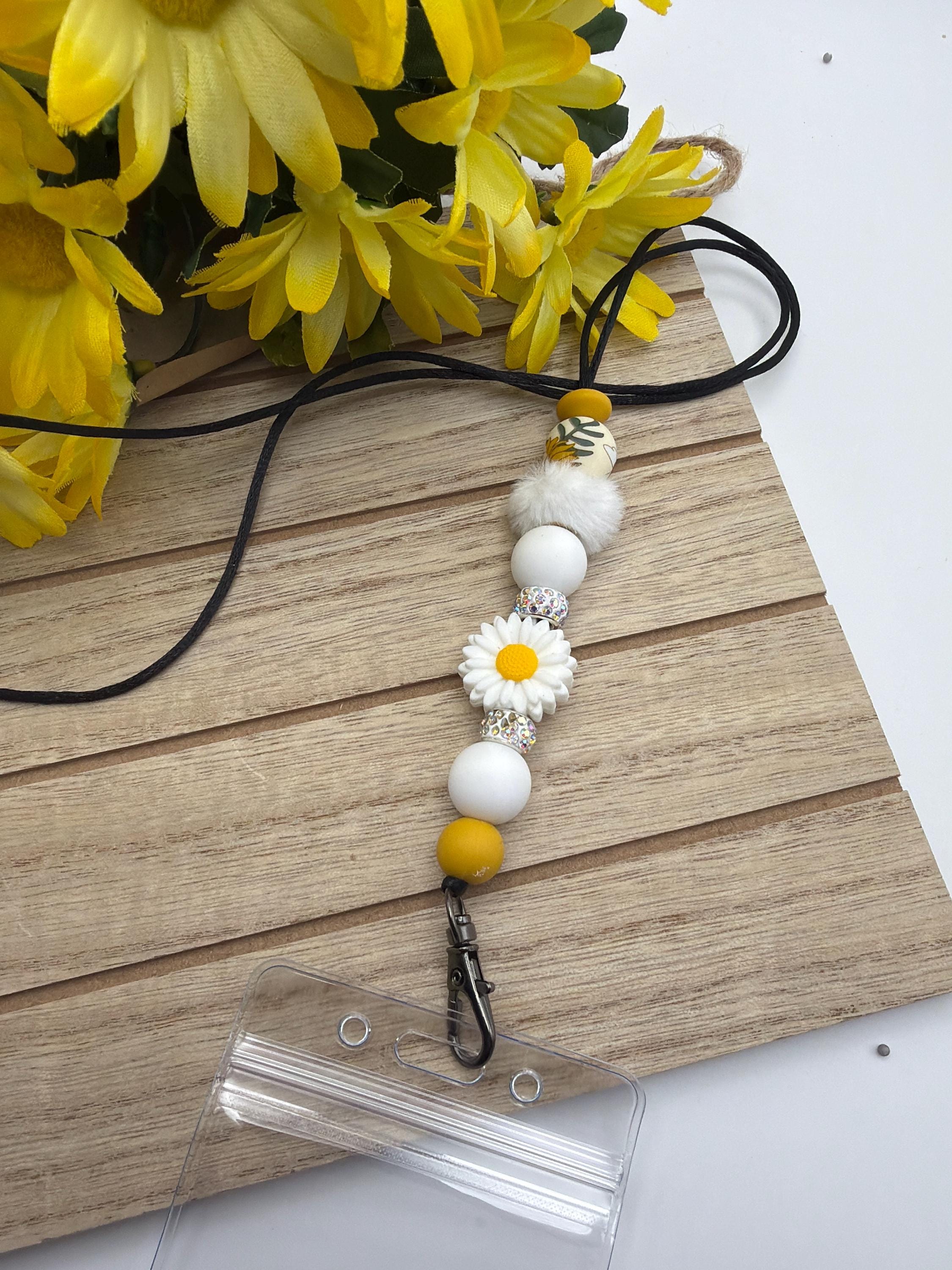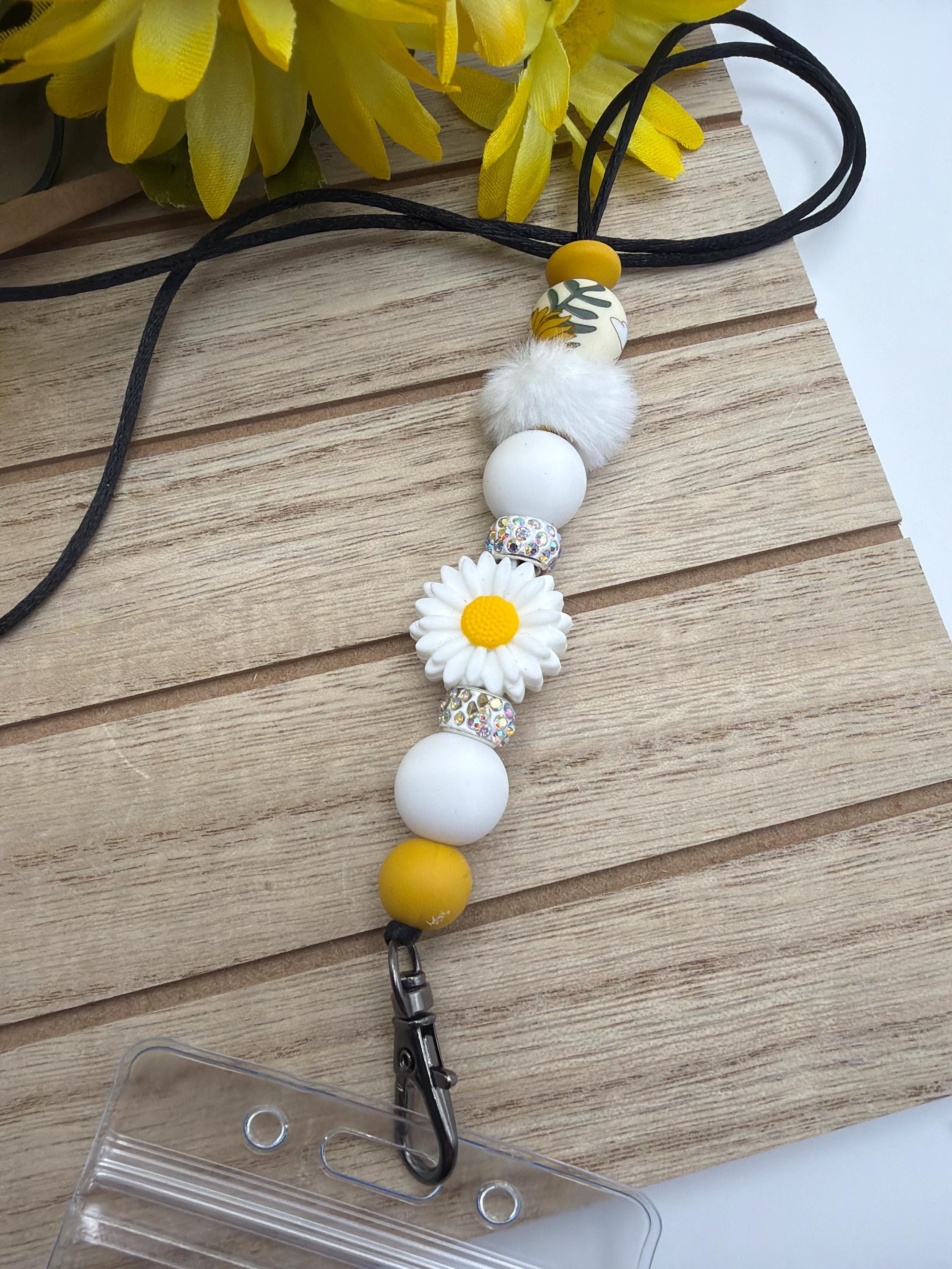 White Daisy Flower Lanyard Silicone Bead Lanyard | Daisy Flower Silicone Bead Lanyard