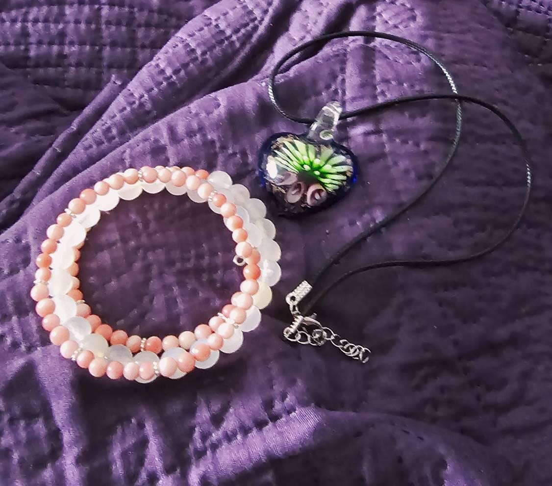 Heart Lampwork Pendant Necklace | Flower Heart Pendant Necklace