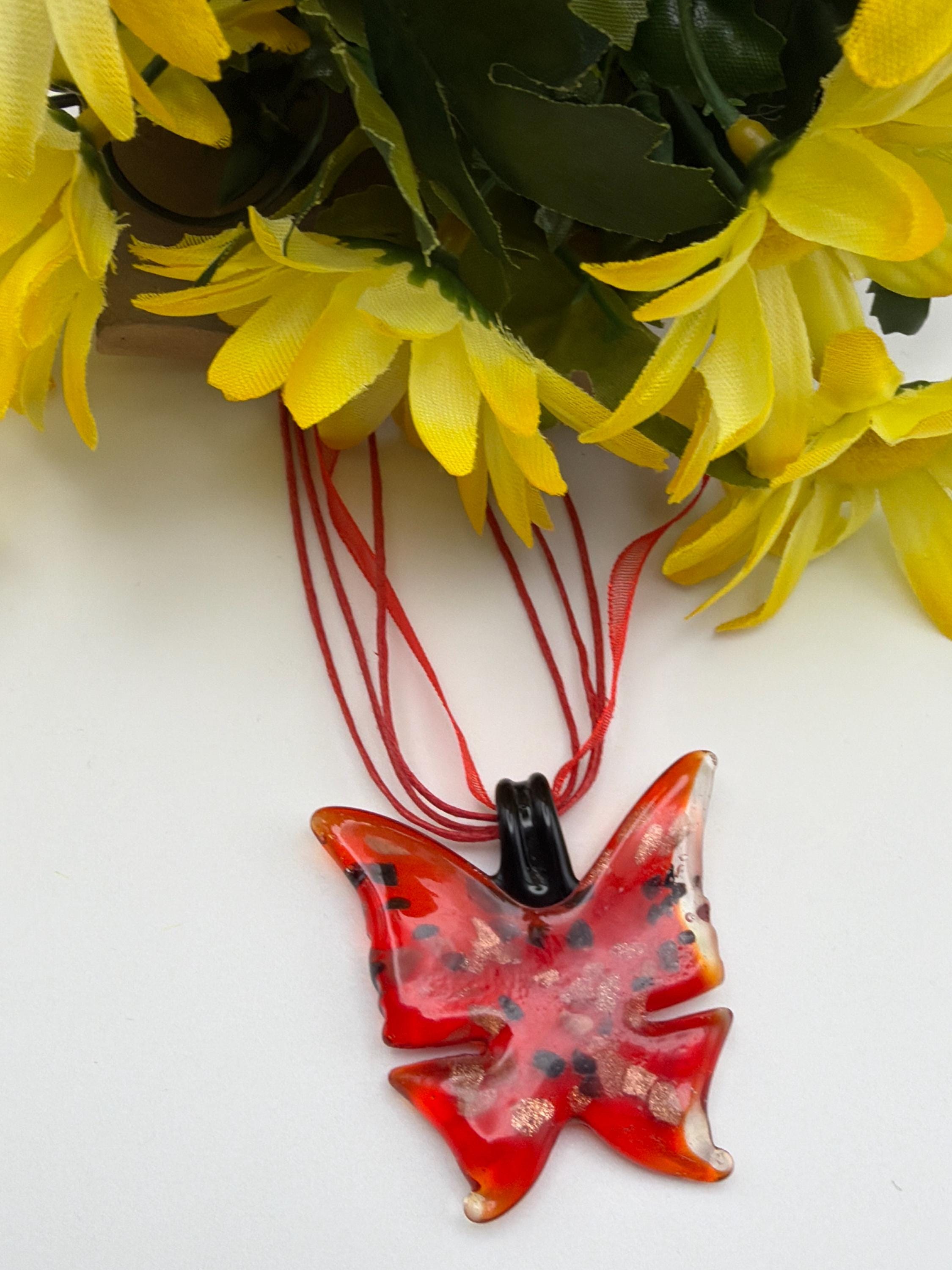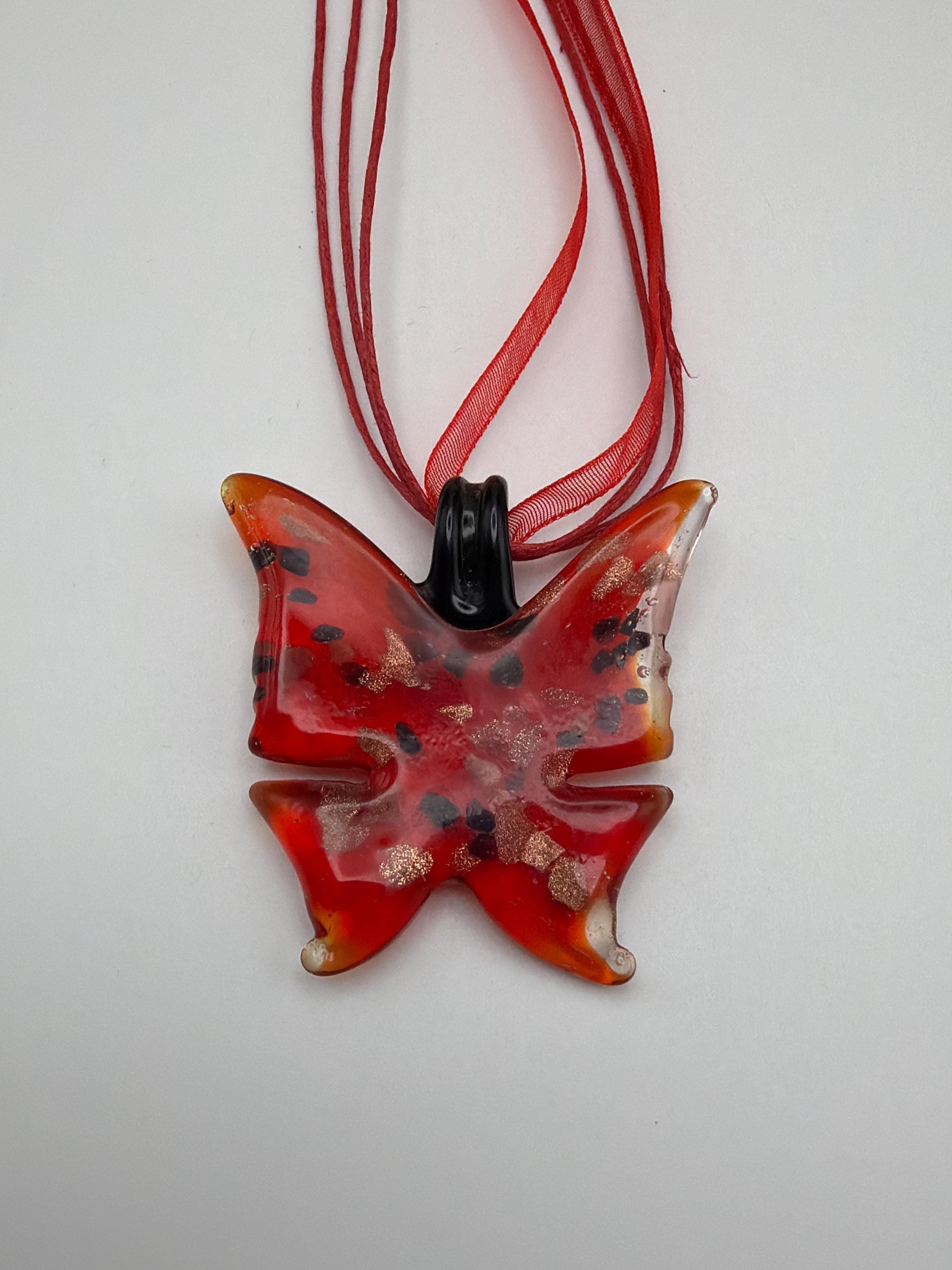 Butterfly Pendant Necklace | Lampwork Glass Butterfly | Glass Butterfly Pendant Necklace
