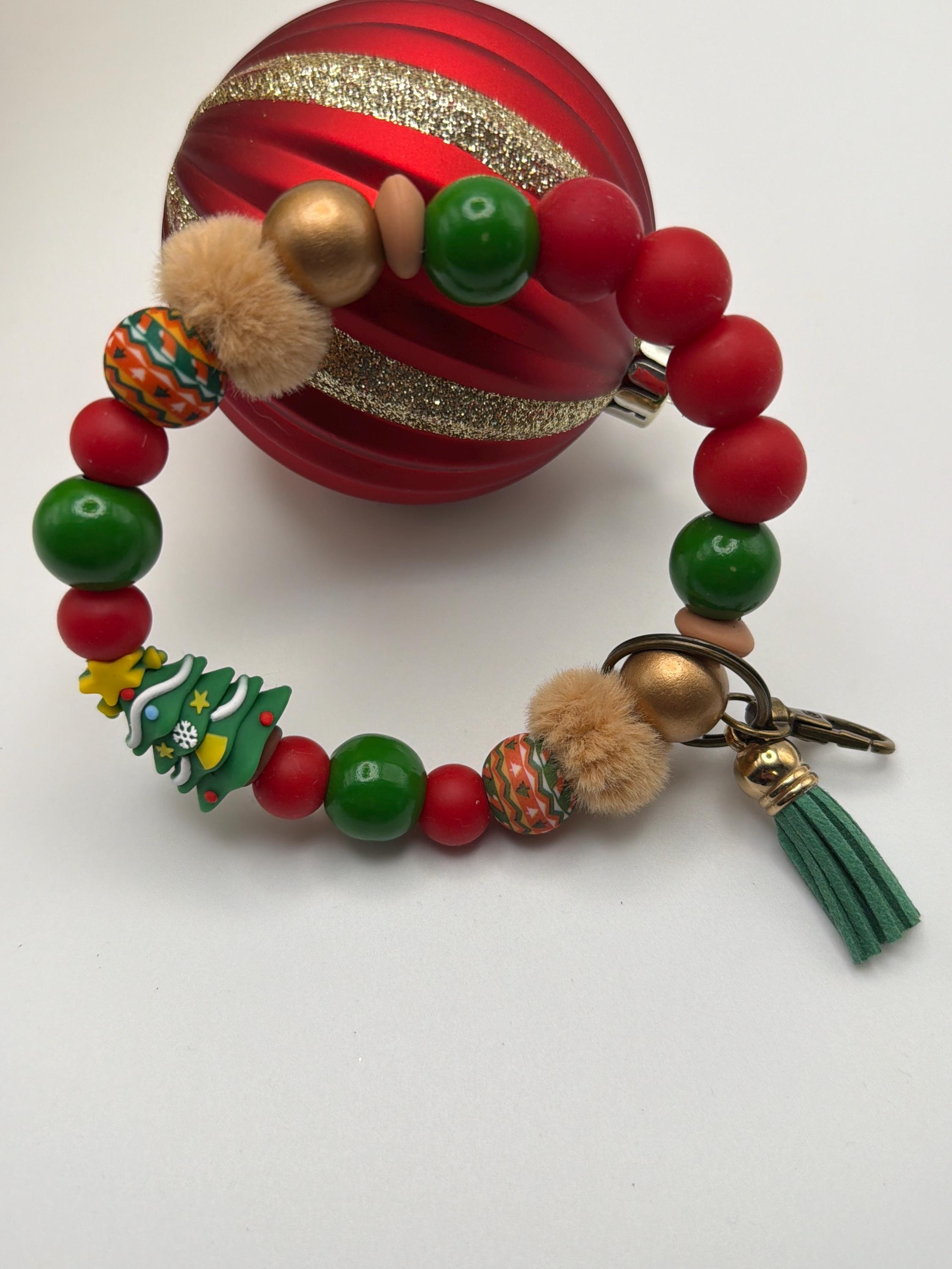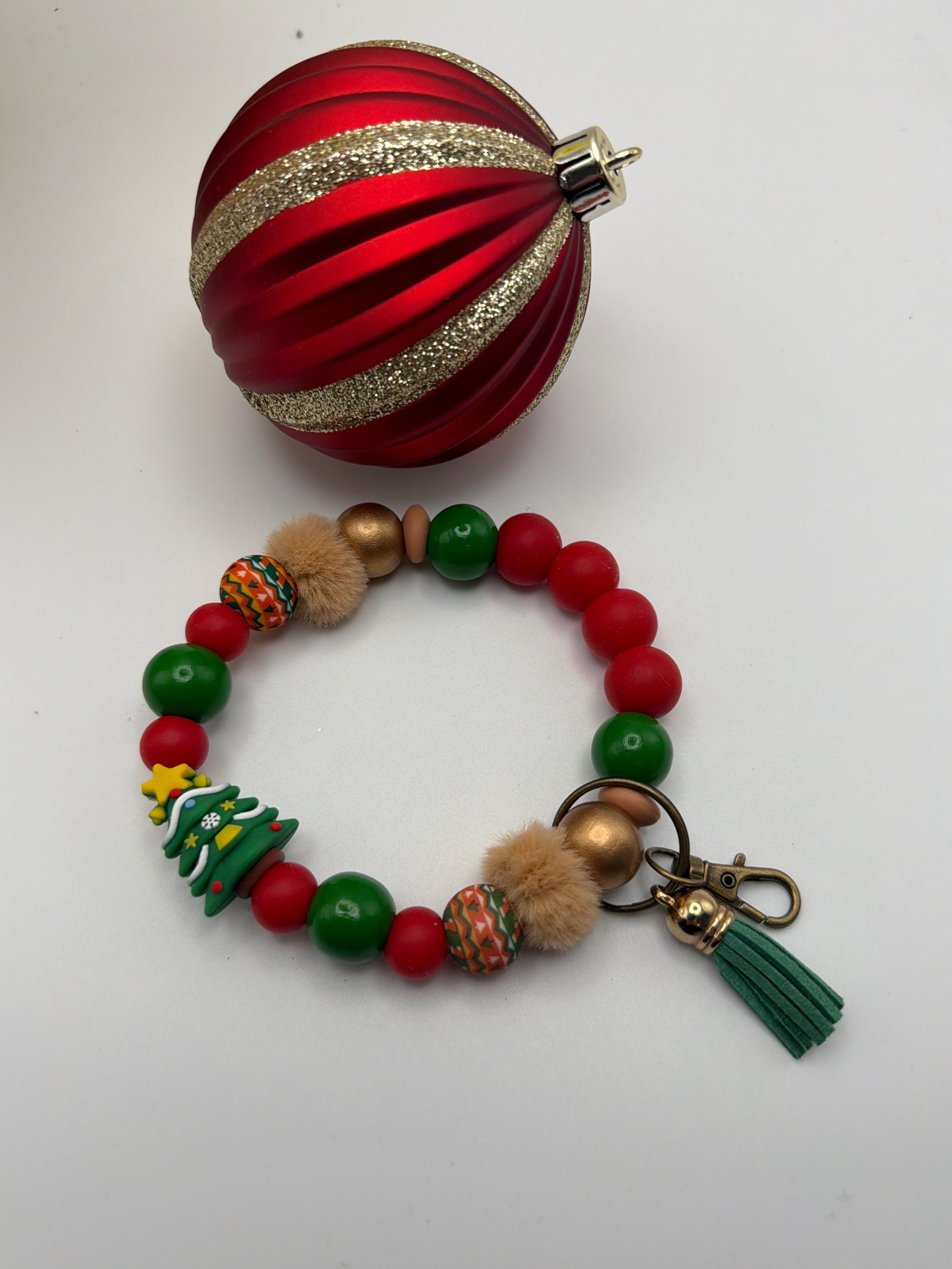 Christmas Tree Silicone Bead Wristlet Keychain | Christmas Wristlet/Keychain