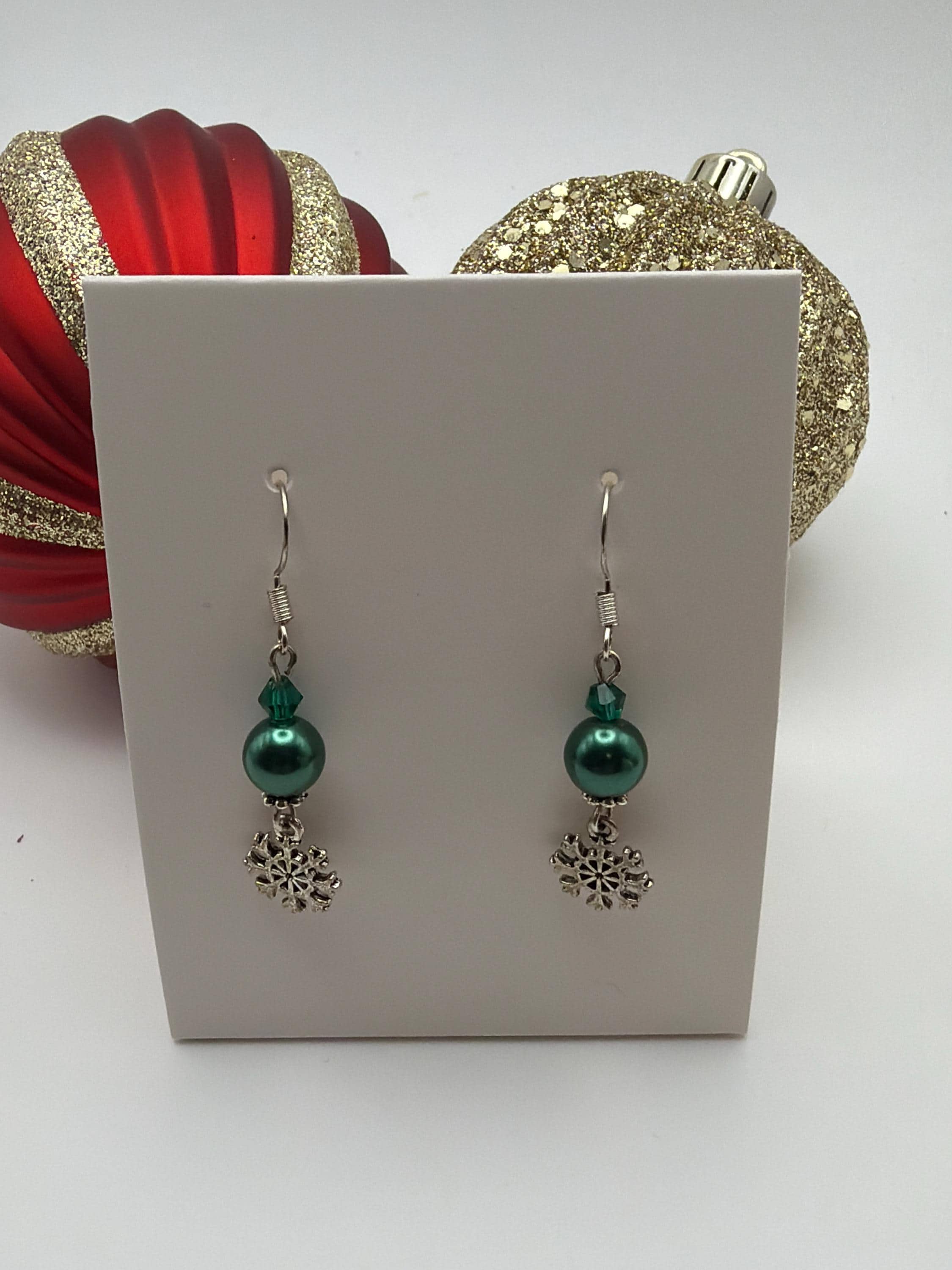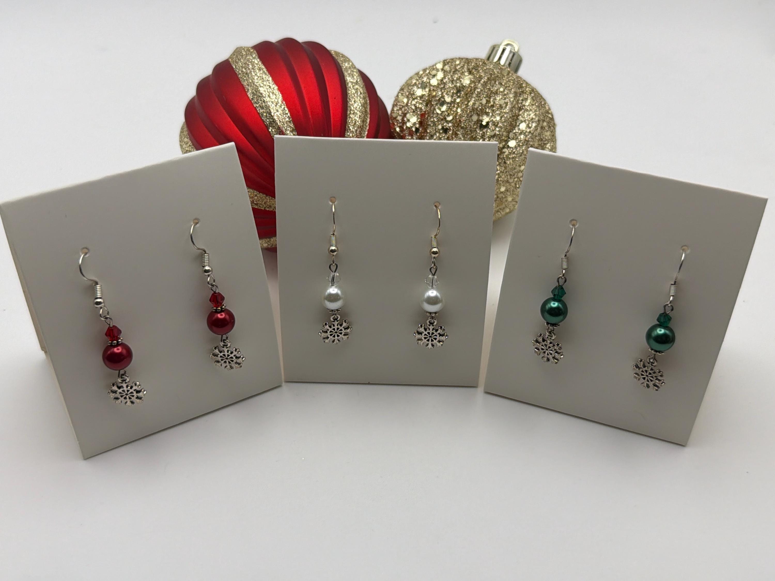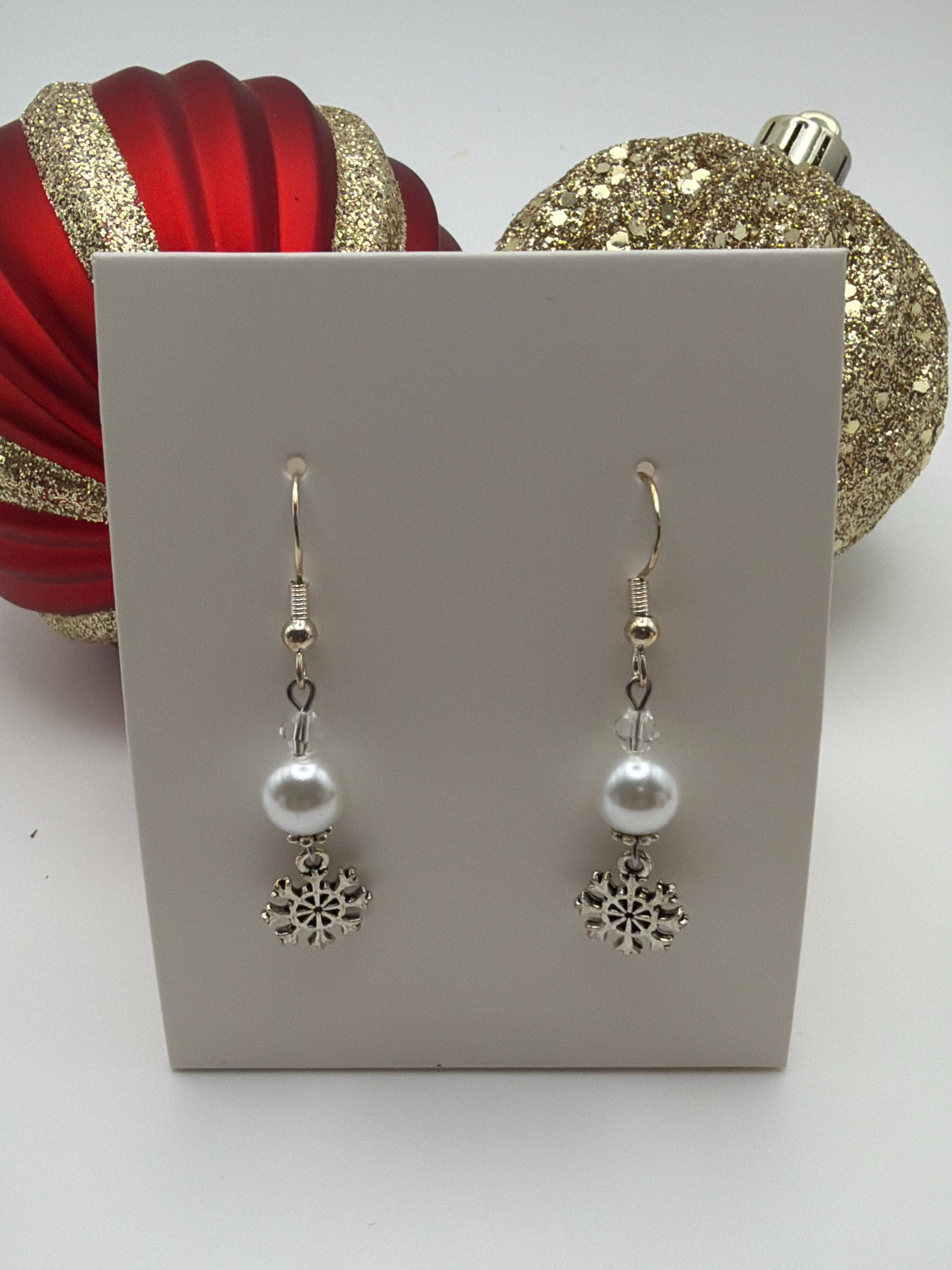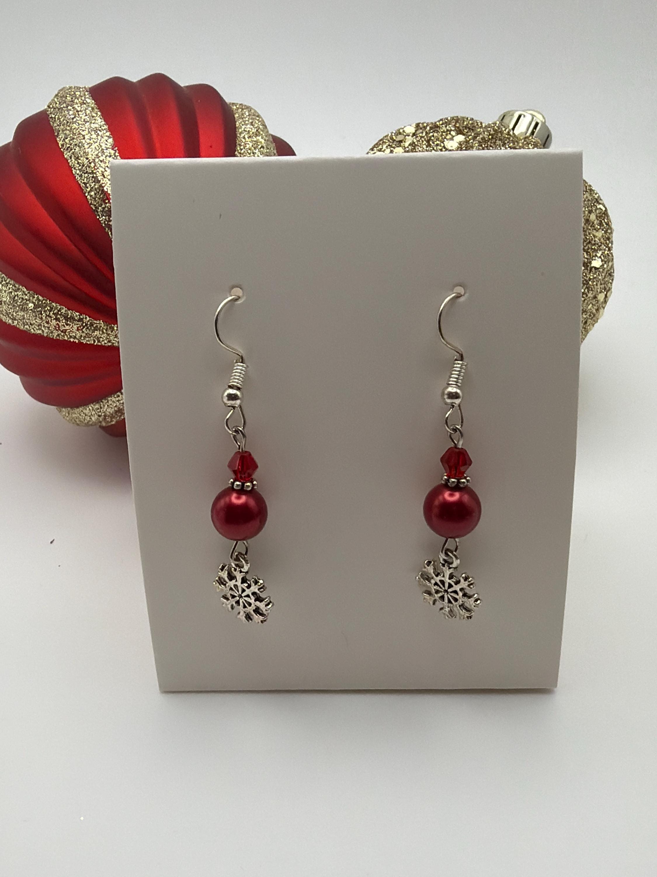 Pearl Bead w/Snowflake Earrings | Christmas Earrings | Stocking Stuffers | Snowflake Earrings