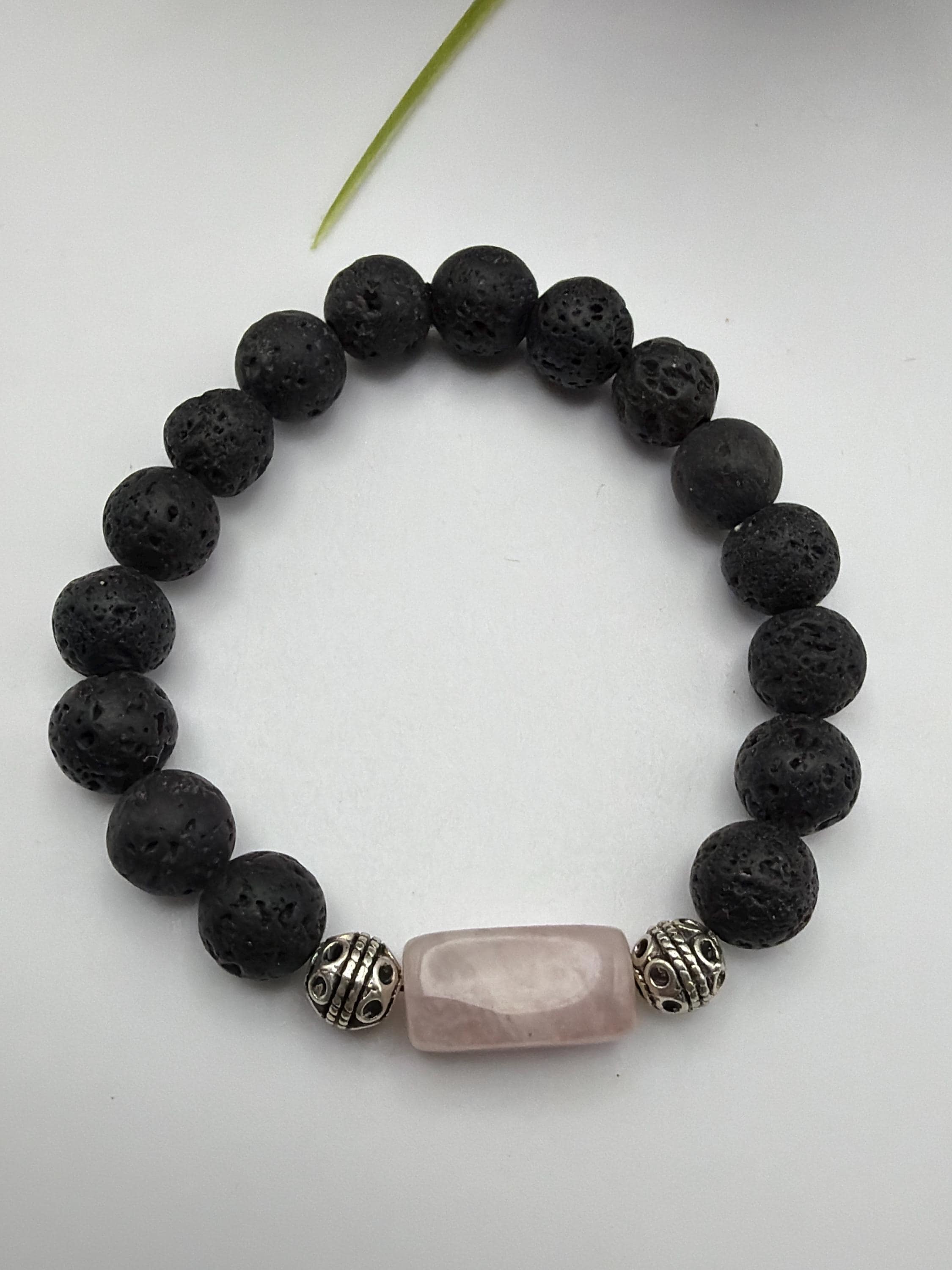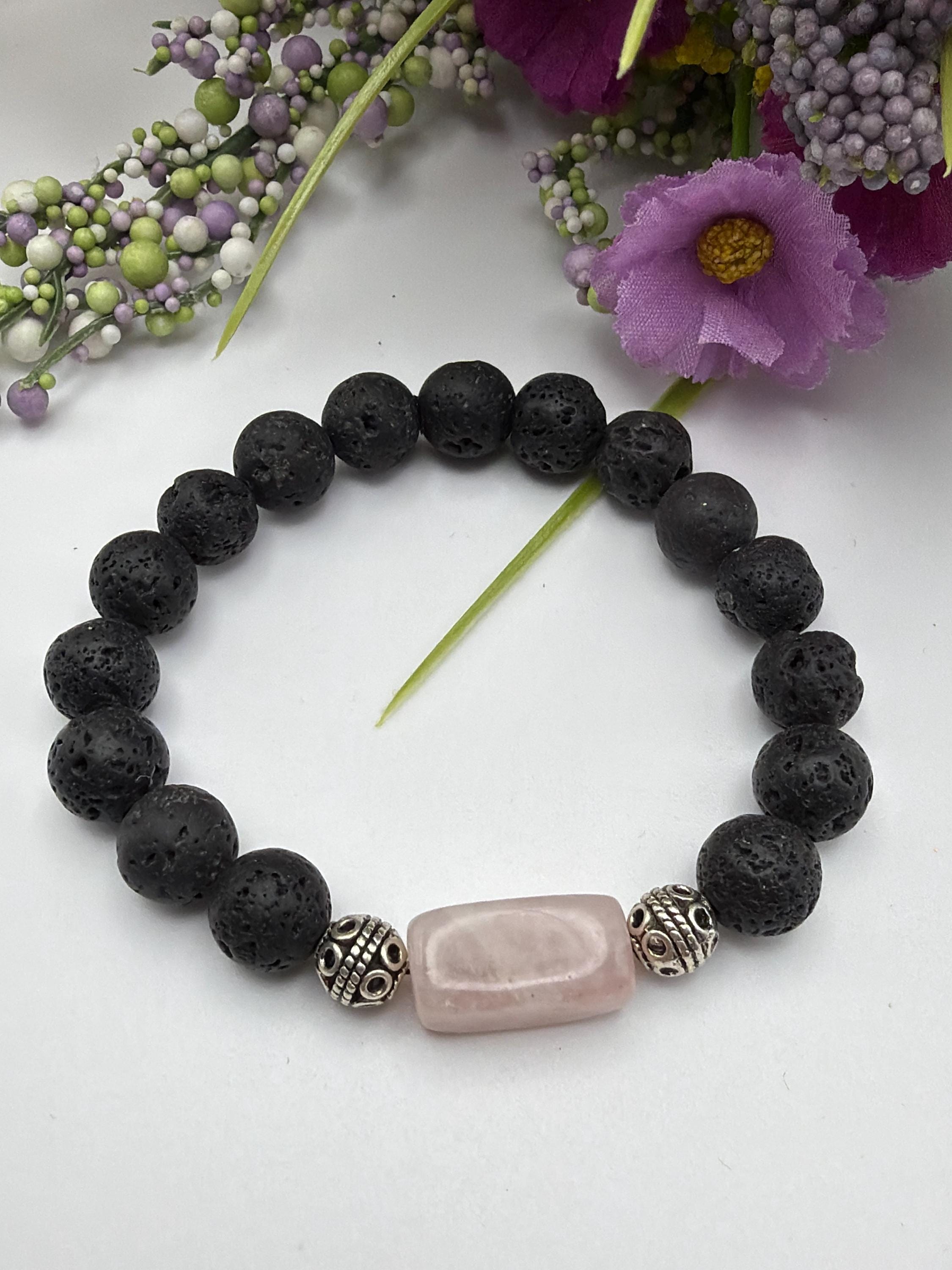 Rose Quartz & Lava Bead Bracelet | Rose Quartz Bracelet | Black Lava Bead Bracelet